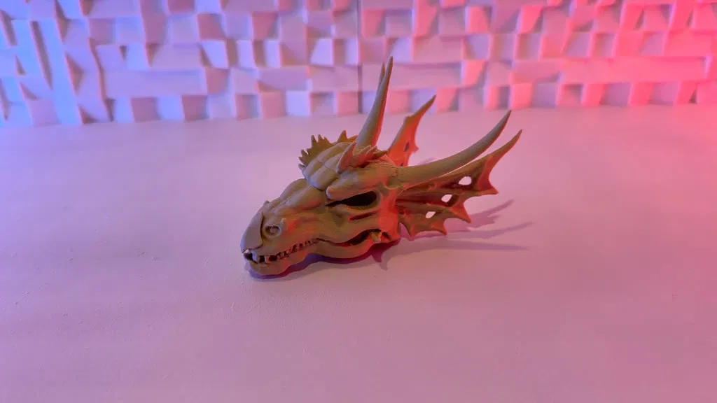 Mô hình in 3D chi tiết của một cái sọ rồng. Thích hợp cho những ai yêu thích rồng, sinh vật thần thoại hoặc đơn giản là muốn có một vật phẩm trang trí độc đáo.