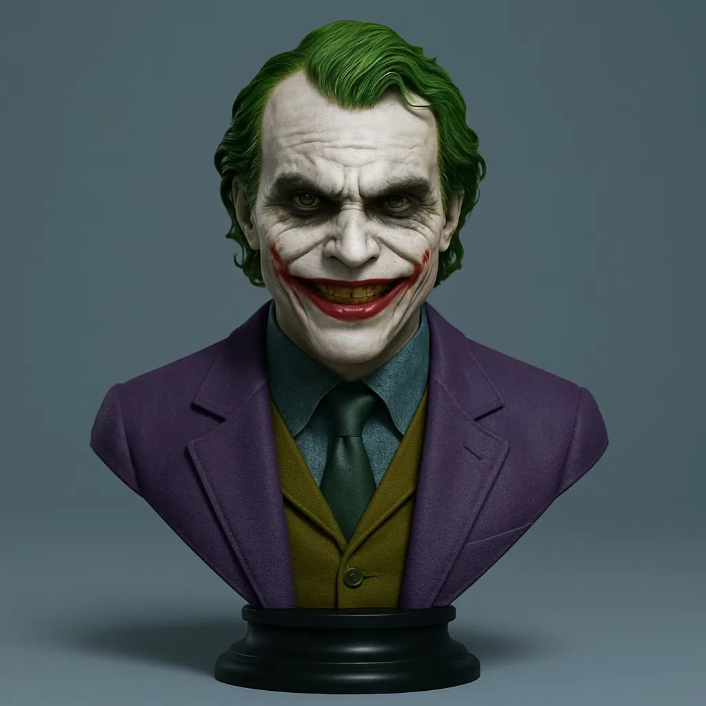 Mô hình tượng chân dung Joker độc đáo, hoàn hảo để trang trí nhà cửa. Sản phẩm này là một tác phẩm điêu khắc chi tiết, mang đậm phong cách của nhân vật Joker, thích hợp để trưng bày và làm quà tặng.