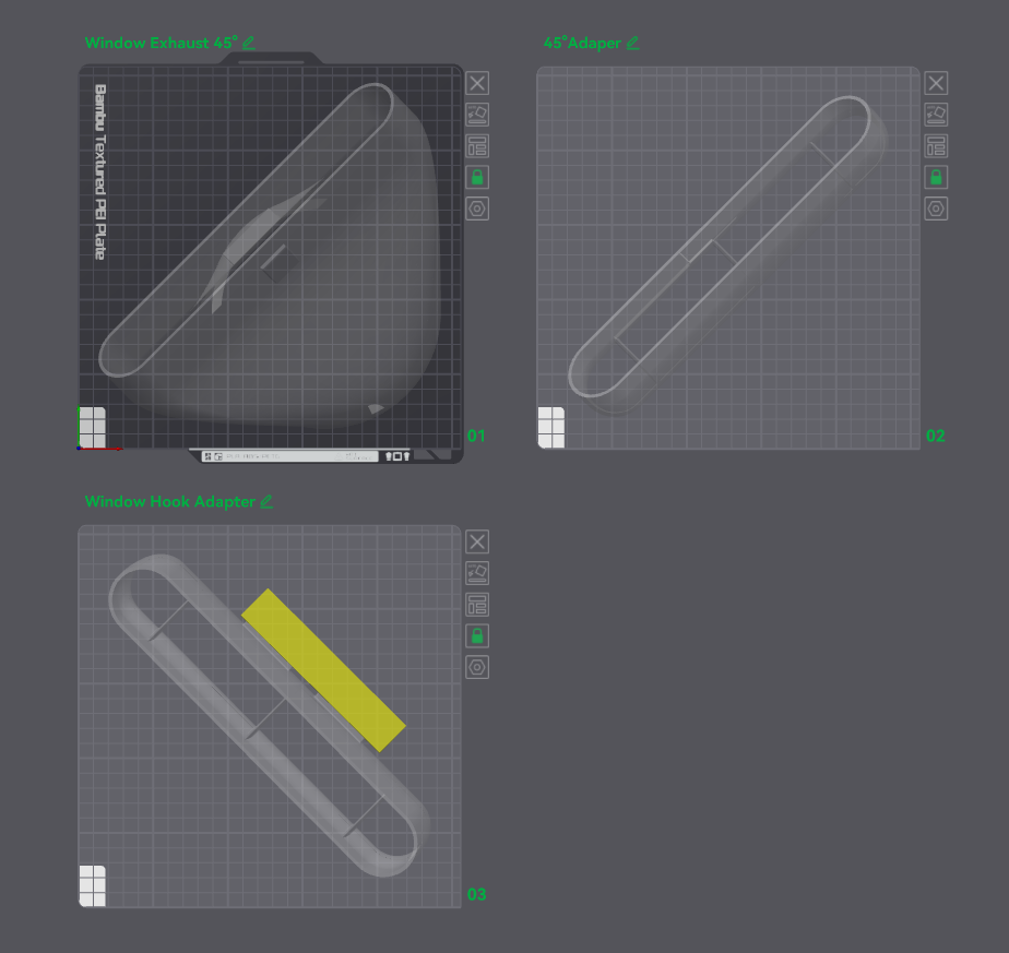 Cái adapter ống xả gắn cửa sổ này là dành cho ống PP 150 mm (ống PVC 150mm chắc cũng xài được), mình đã thử với PETG và đầu phun 0.6 mm. Các khớp nối thêm vô thì nó sẽ hơi lỏng một chút nha, nên anh em nhớ dùng keo dán đó. Mấy cái adapter này có thể đổi qua đổi lại được, ví dụ như gắn hai cái 45°.