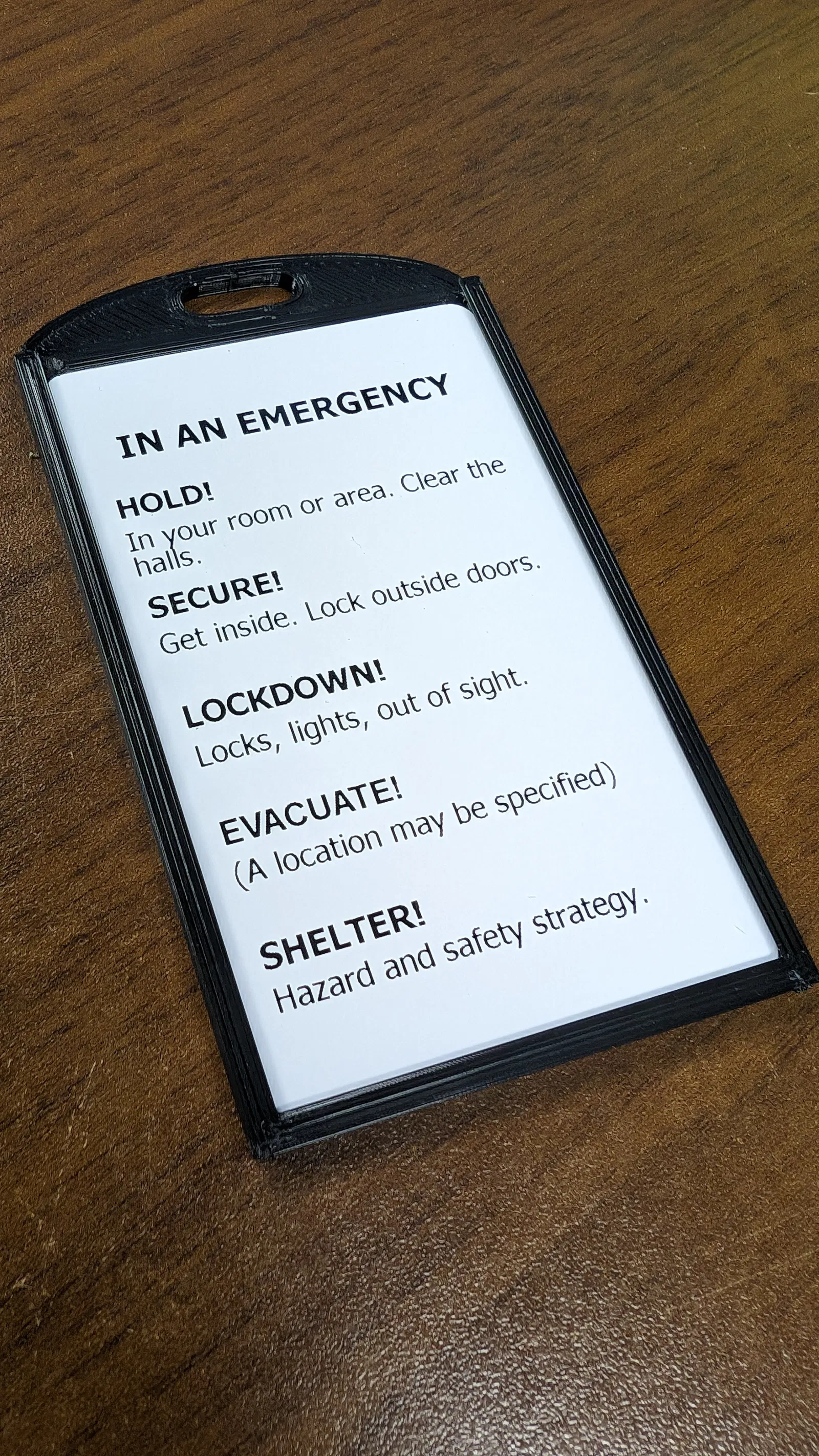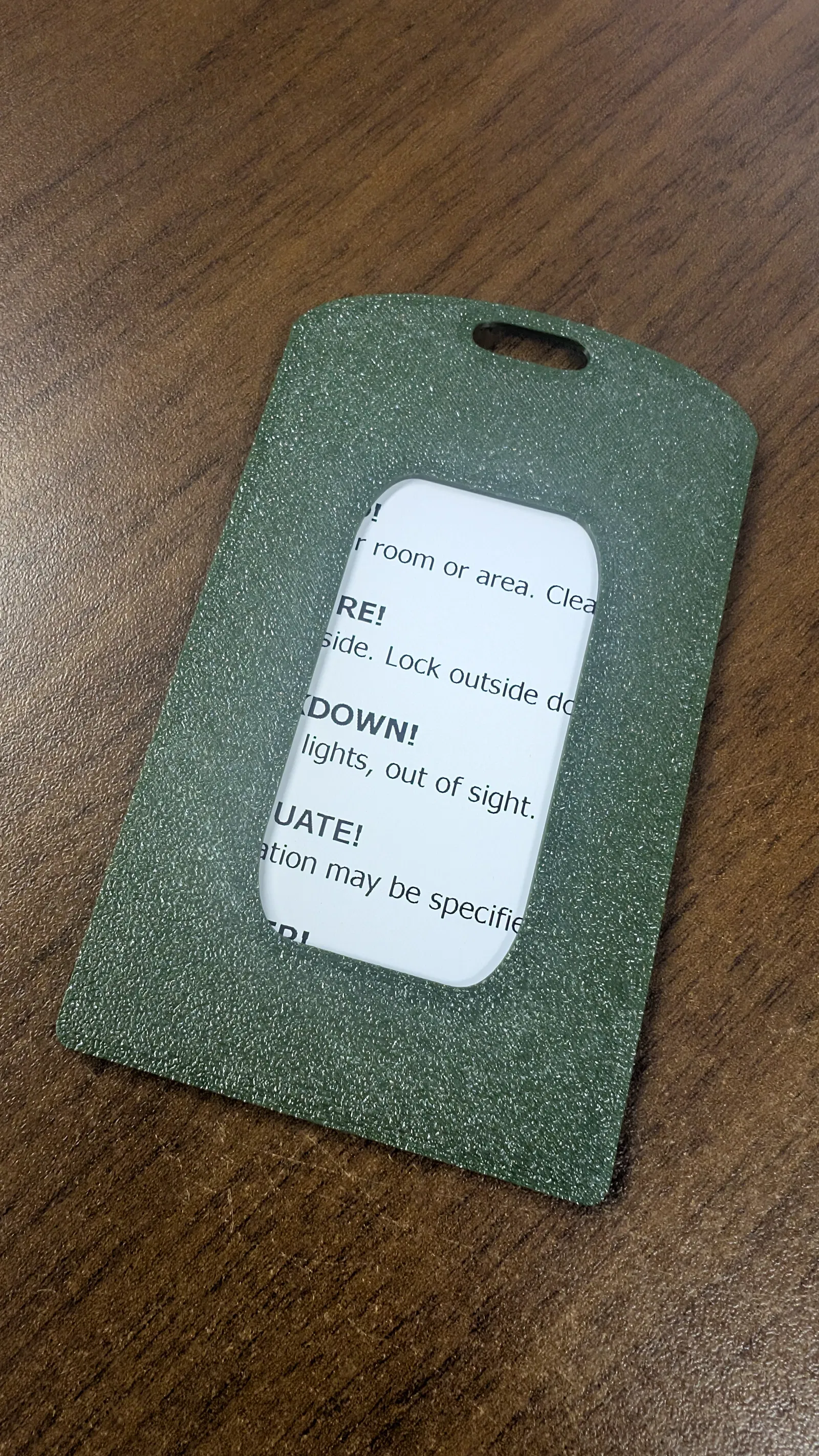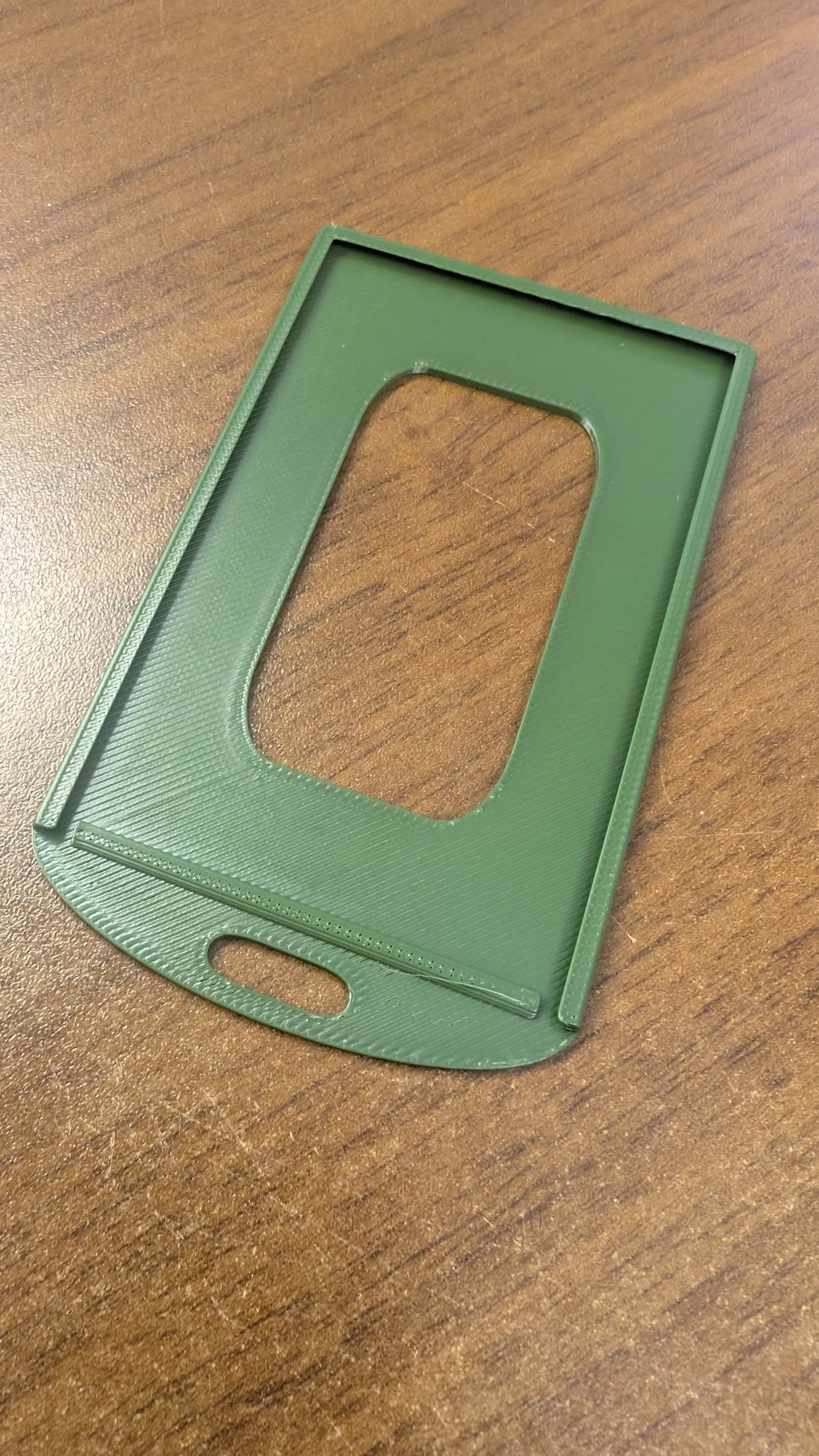 Tui hổng có in được mấy cái thẻ ID mà cần support, nên tui chế cái này khỏi cần luôn. Nó giữ thẻ cứng cáp, in phẳng trên bàn máy với PLA là xong.