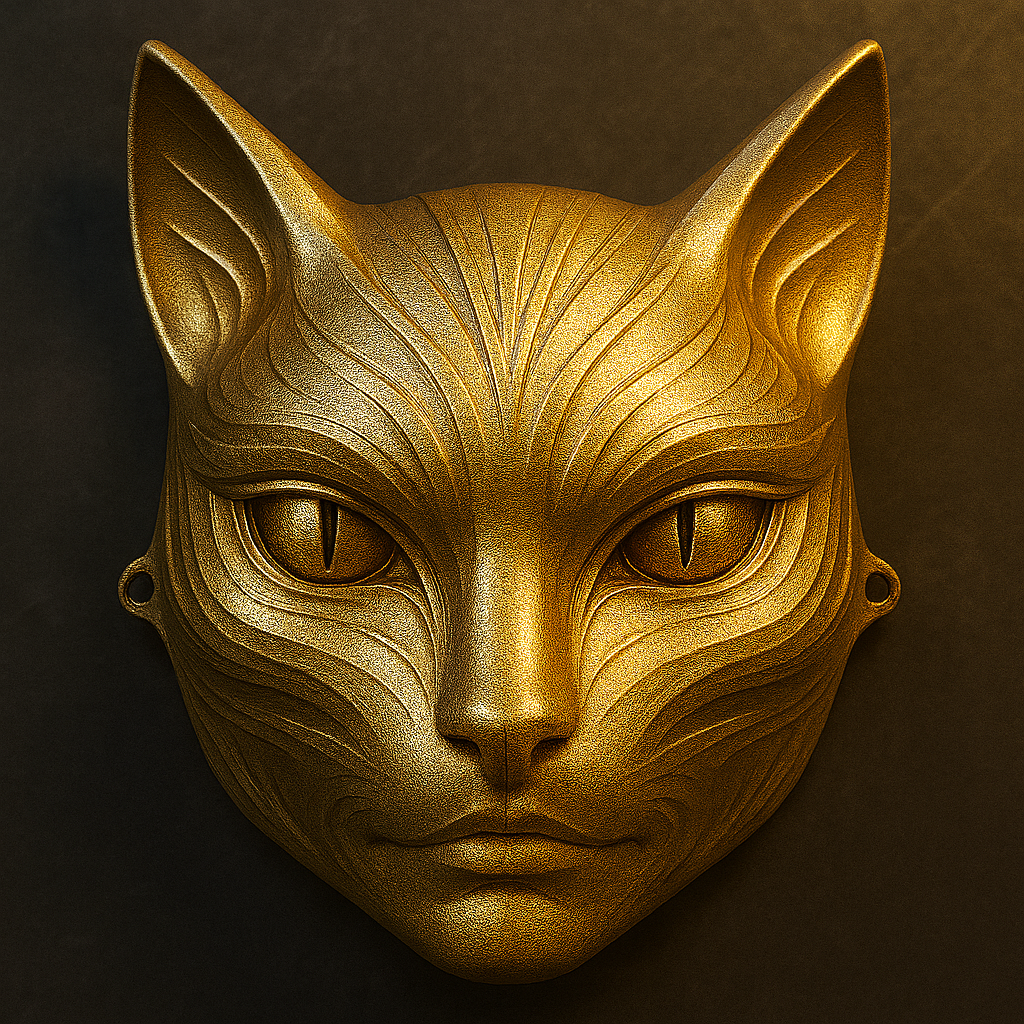 "Golden Soul – Mặt Nạ Bastet" là một chiếc mặt nạ in 3D toàn mặt, lấy cảm hứng từ sự thanh lịch và huyền bí của Bastet, nữ thần bảo hộ và duyên dáng của Ai Cập cổ đại. Các đường nét của mèo và sự đối xứng duyên dáng phản ánh một sức mạnh tĩnh lặng, trong khi lớp hoàn thiện màu vàng mang lại cho người đeo một sự hiện diện thần thánh, ấn tượng. Lý tưởng cho các buổi biểu diễn trên sân khấu, cosplay, chụp ảnh, hoặc những người sưu tập các thiết kế thần thoại.