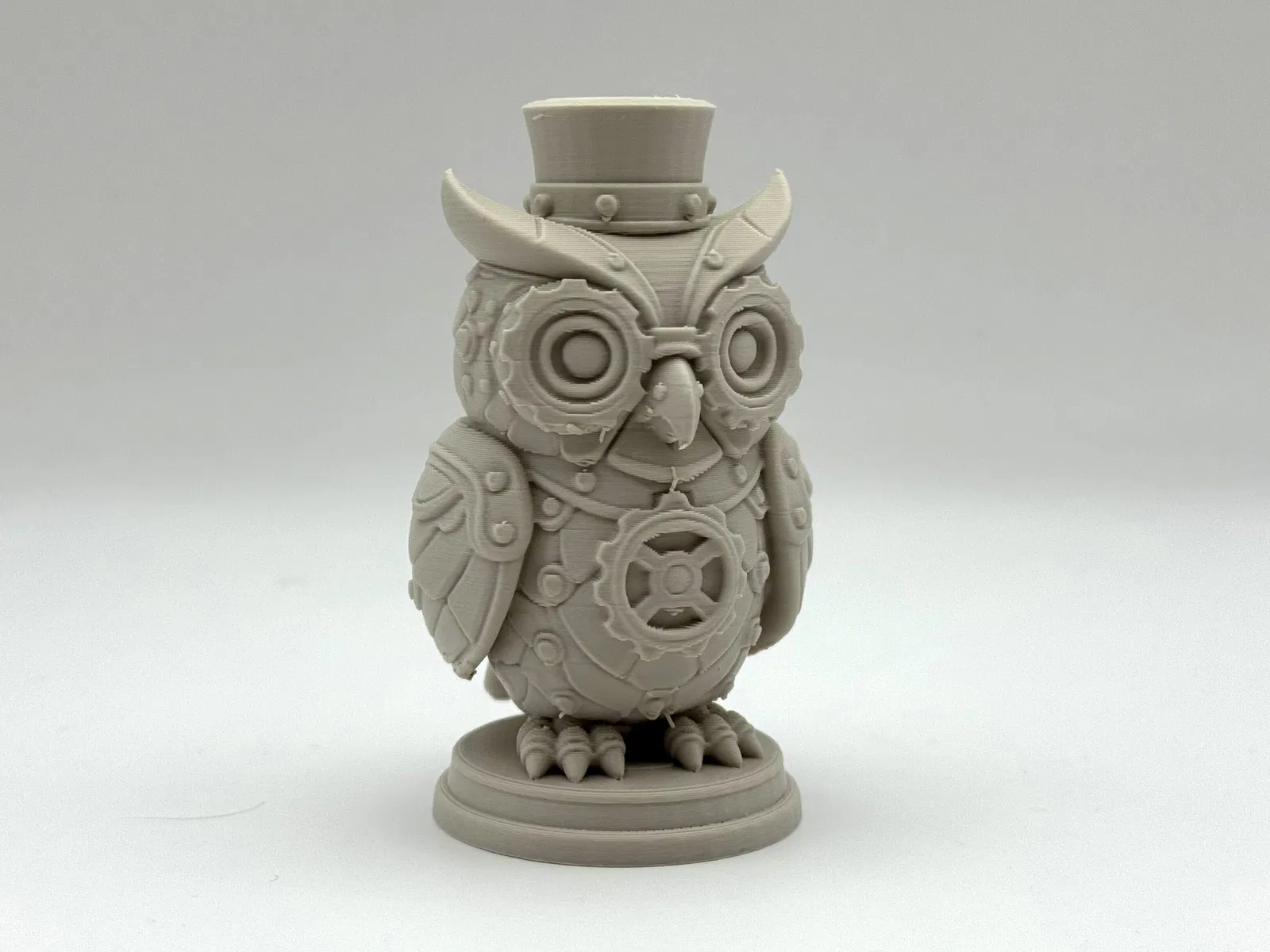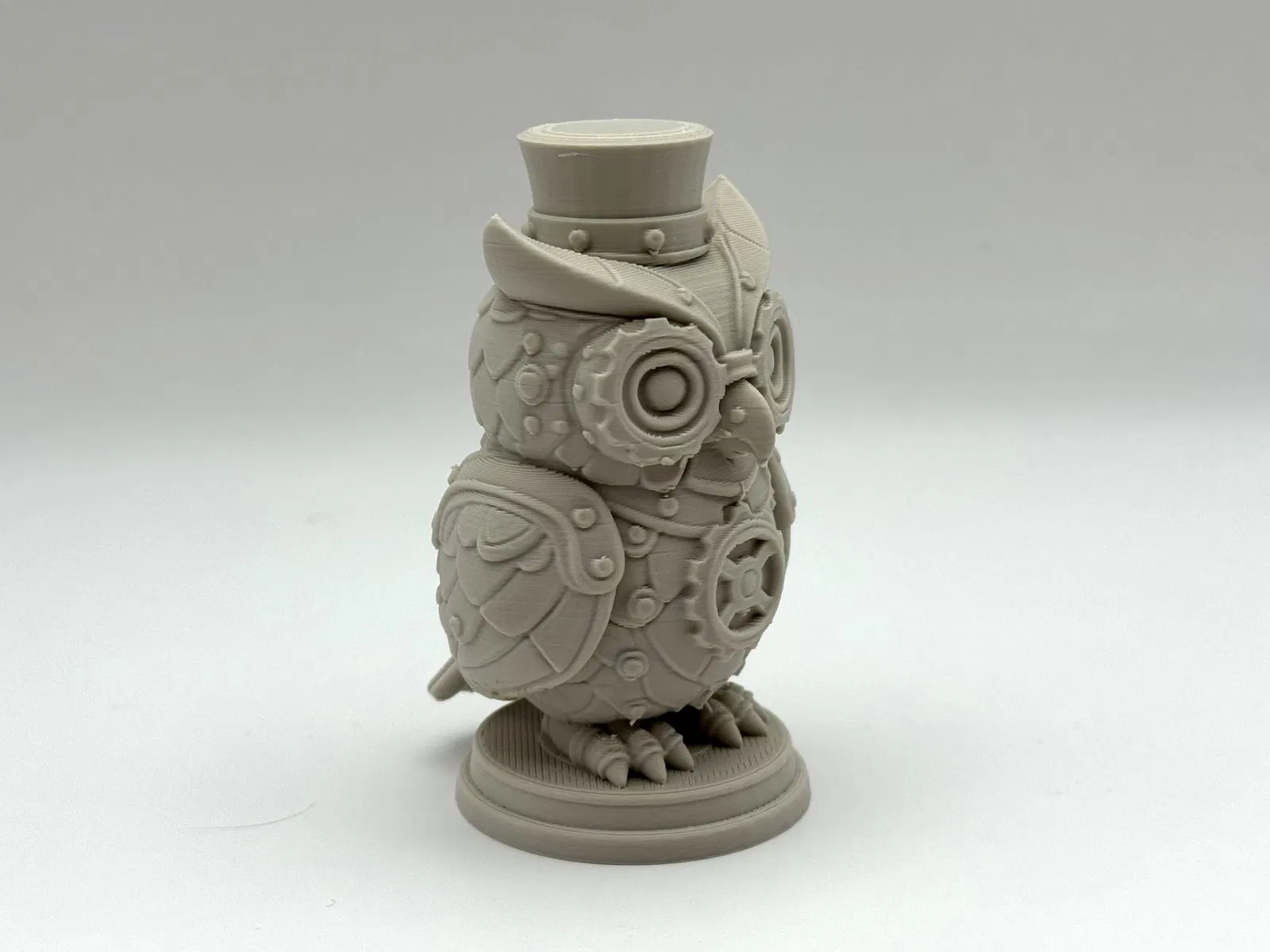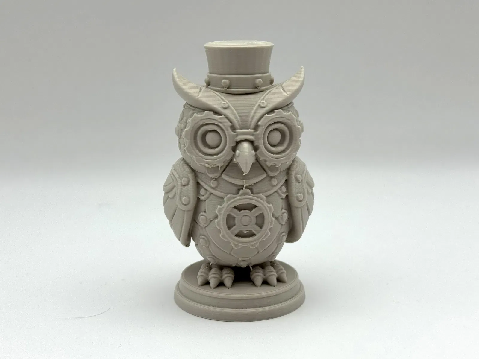 Mang vẻ độc đáo và kỳ diệu của máy móc đến bàn làm việc của bạn với Tượng Cú Họa Tiết Steampunk. Chú robot nhỏ này đầy ắp bánh răng, đinh tán và nét quyến rũ của thời Victoria. Cần vật liệu hỗ trợ dạng hữu cơ để in.