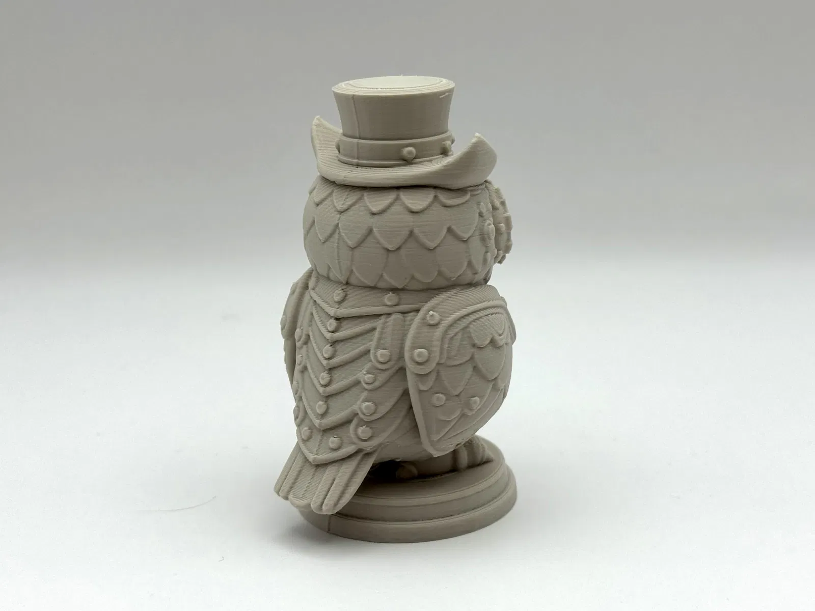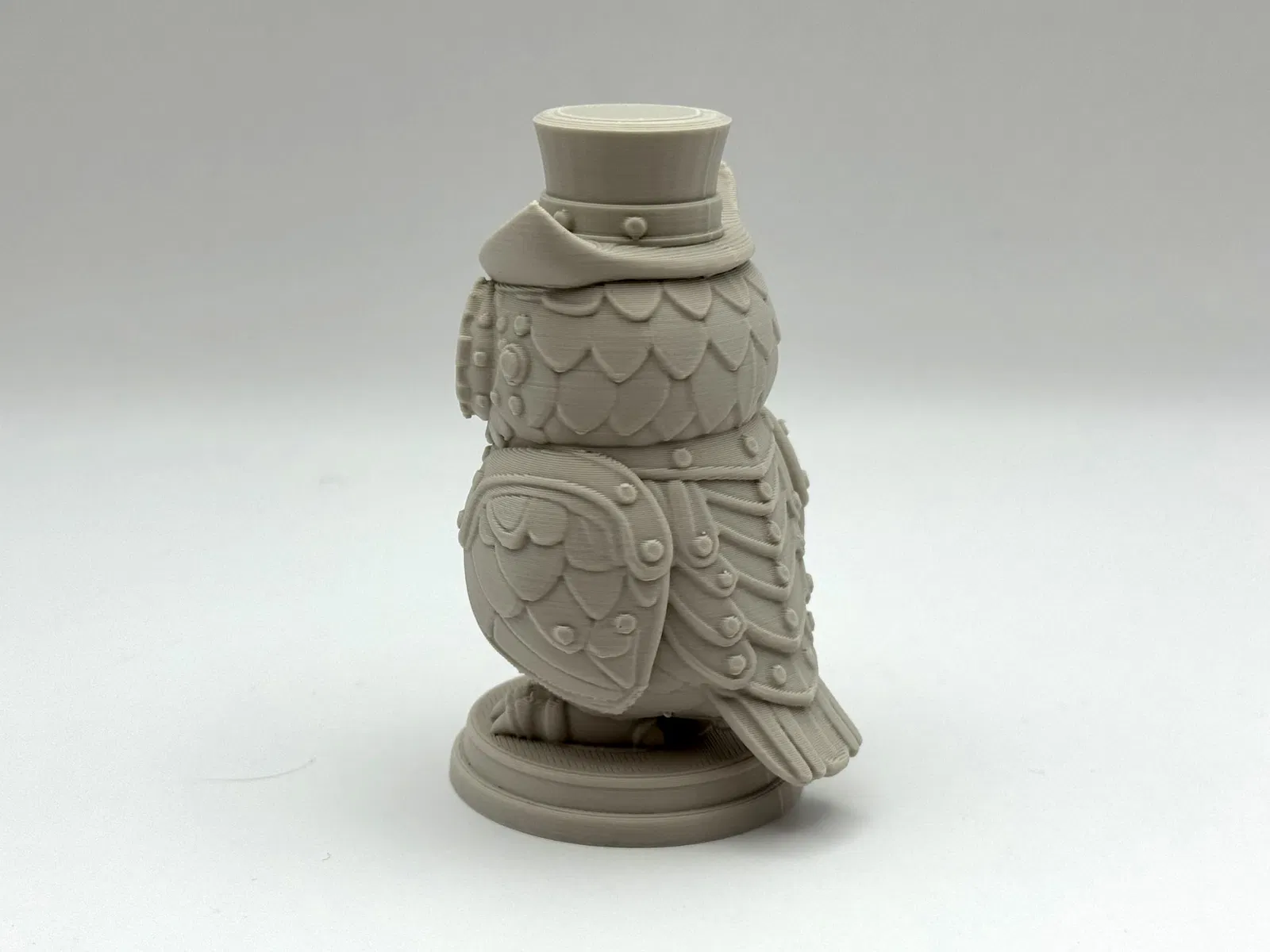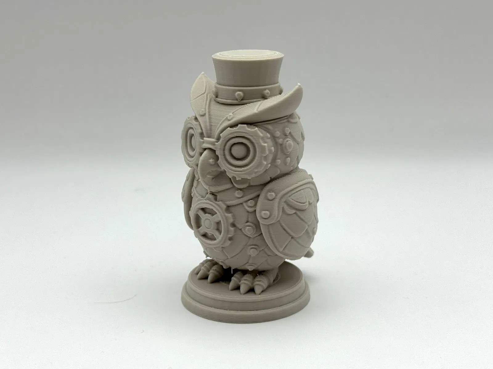 Mang vẻ độc đáo và kỳ diệu của máy móc đến bàn làm việc của bạn với Tượng Cú Họa Tiết Steampunk. Chú robot nhỏ này đầy ắp bánh răng, đinh tán và nét quyến rũ của thời Victoria. Cần vật liệu hỗ trợ dạng hữu cơ để in.