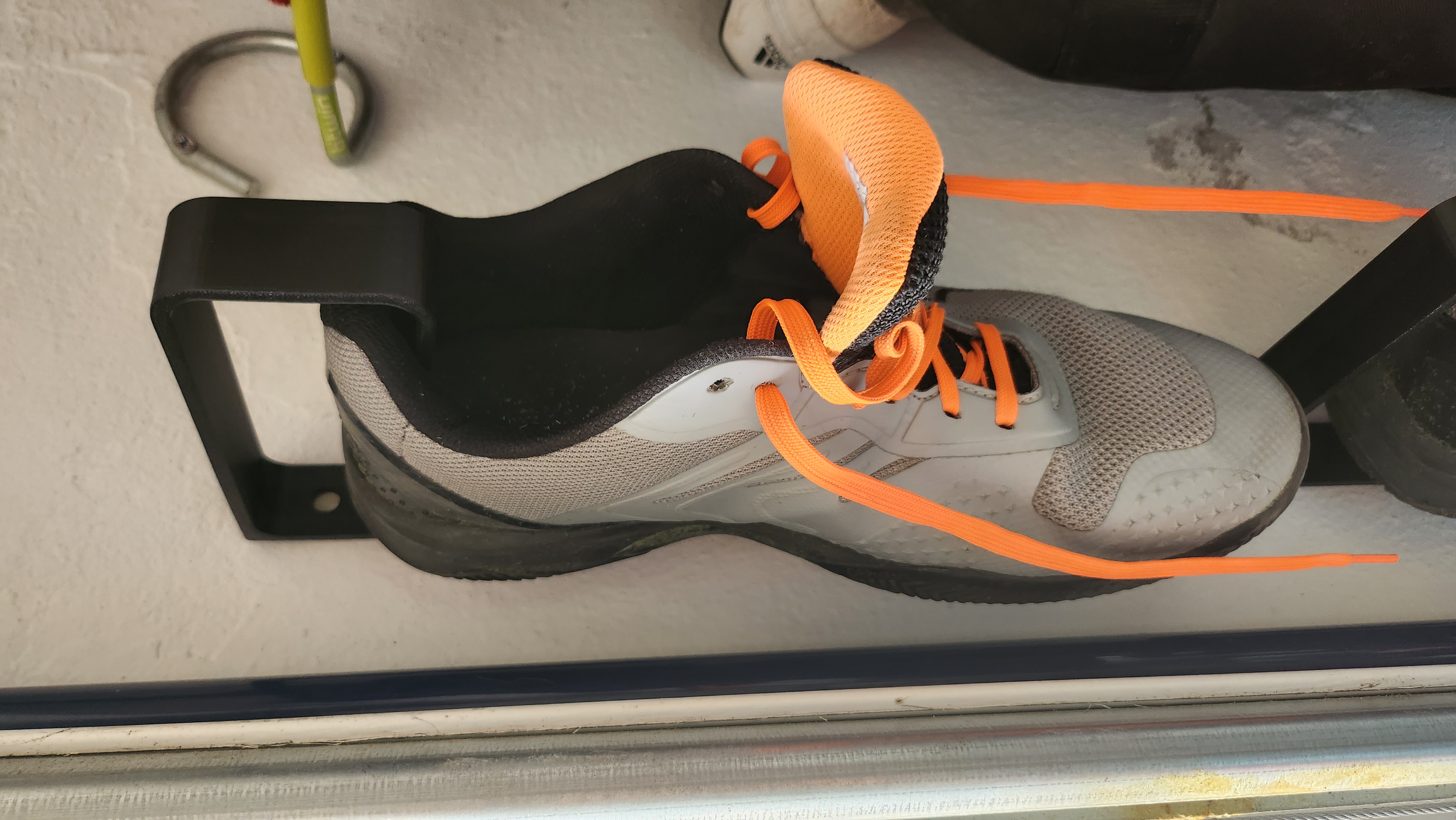 Móc treo giày giúp bạn hong khô đôi giày sau khi chơi thể thao. Phiên bản cải tiến V2.0 có thêm phần gia cố ở góc tường, phù hợp với cả những đôi giày nặng hơn. Bạn có thể bắt vít hoặc dùng băng keo hai mặt để cố định tùy ý.