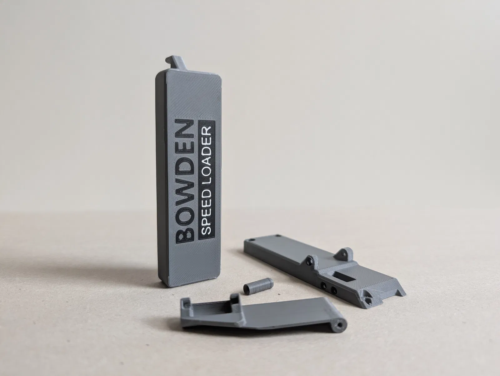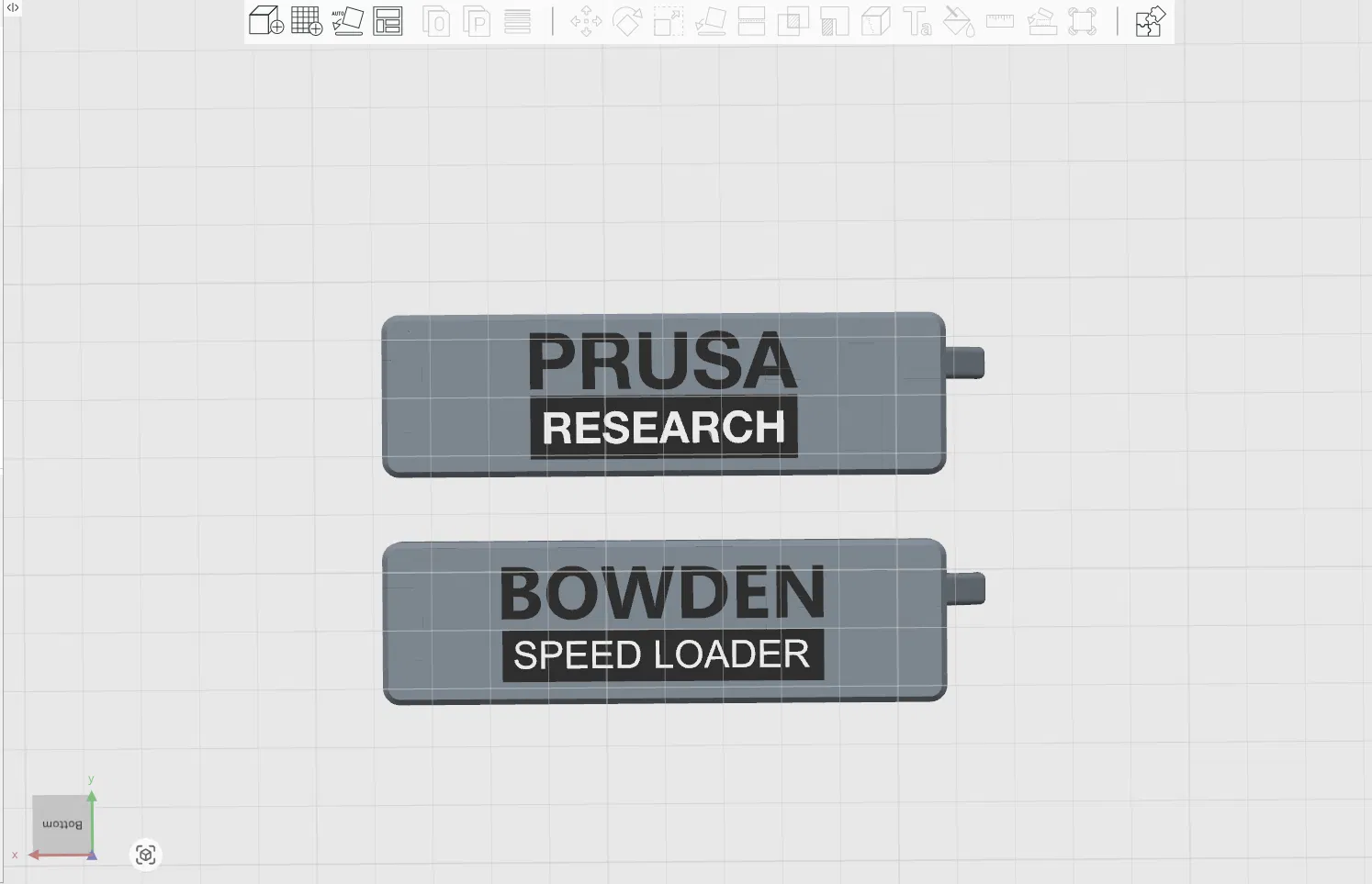 Có 2 phiên bản lận nha, 1 phiên bản có logo “Bowden Speed Loader” và 1 phiên bản có logo "Prusa Research"! Cũng chỉnh sửa font chữ lại để in màu đẹp hơn.