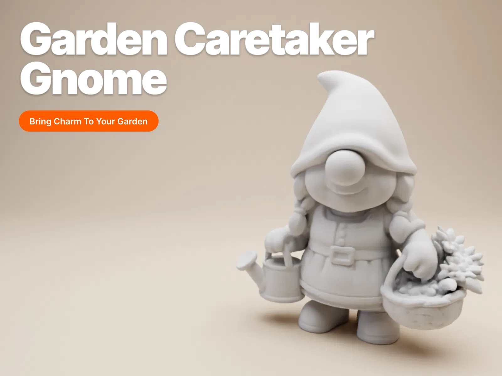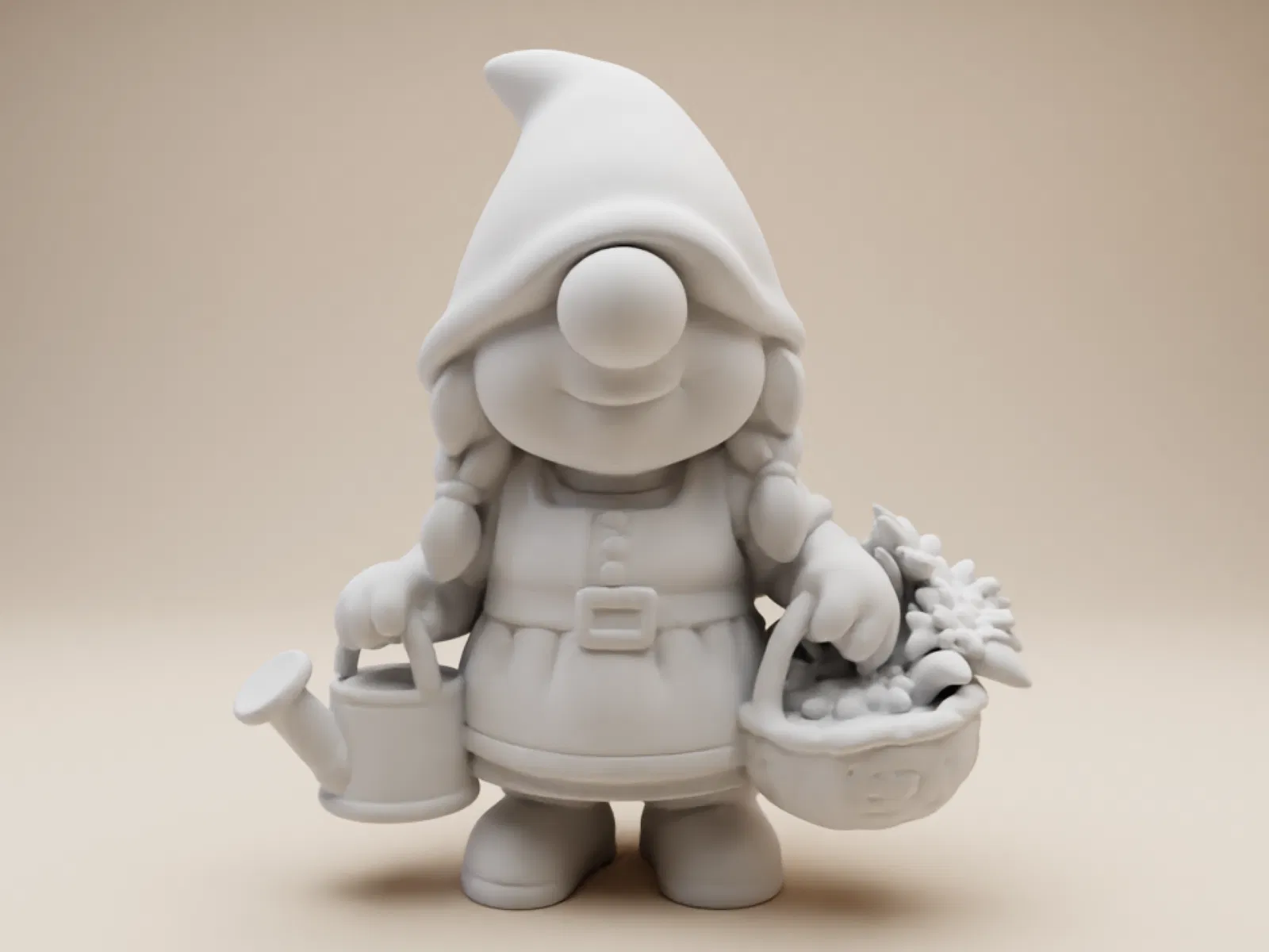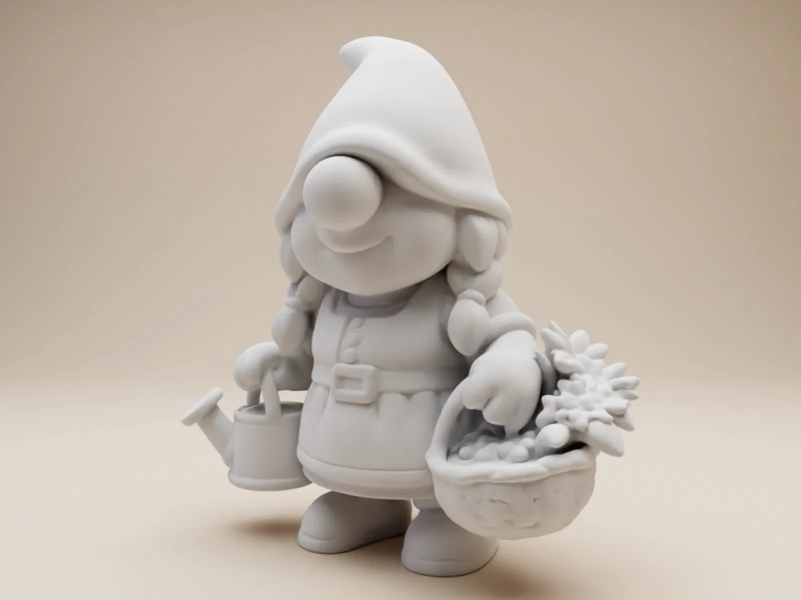 Ông cụ làm vườn đáng yêu này là sự bổ sung mới cho bộ sưu tập gnome ngộ nghĩnh. Cô ấy có mái tóc tết bím, thân hình tròn lùn, mặc trang phục làm vườn với bình tưới nước và giỏ hoa. Render 3D chi tiết, in tốt bằng PLA, PETG, resin.