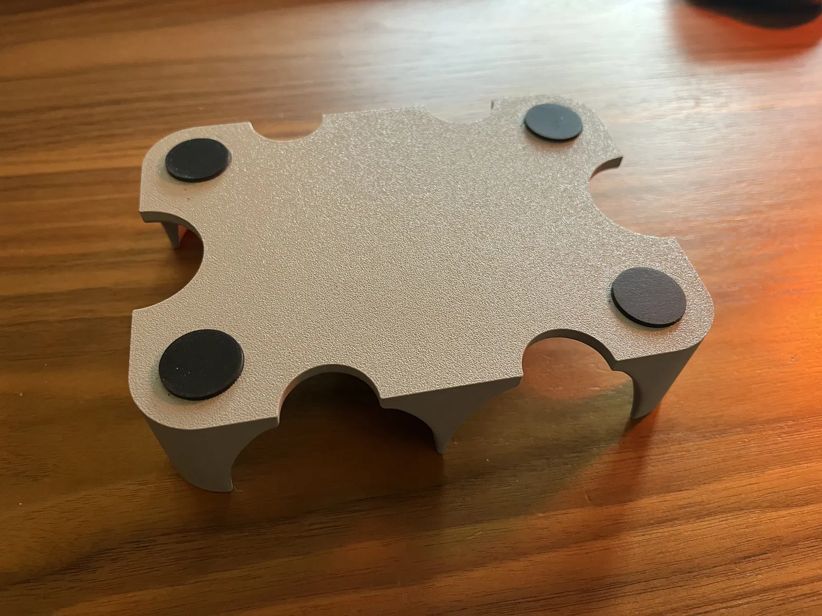 Tui có thử làm chỗ lõm sâu 0.4mm cho chân đế, tui đoán là 2 lớp in thì sẽ ổn, nhưng mà nó nông quá, chỉ làm dấu chỗ để chân đế thôi chứ không giữ được chân đế khỏi bị tróc hay bung ra đâu. Tui đã tăng độ lõm lên 1mm trong file STL tui up lên, nhưng có lẽ bạn sẽ cần chỉnh lại tùy theo loại chân đế bạn đang xài.