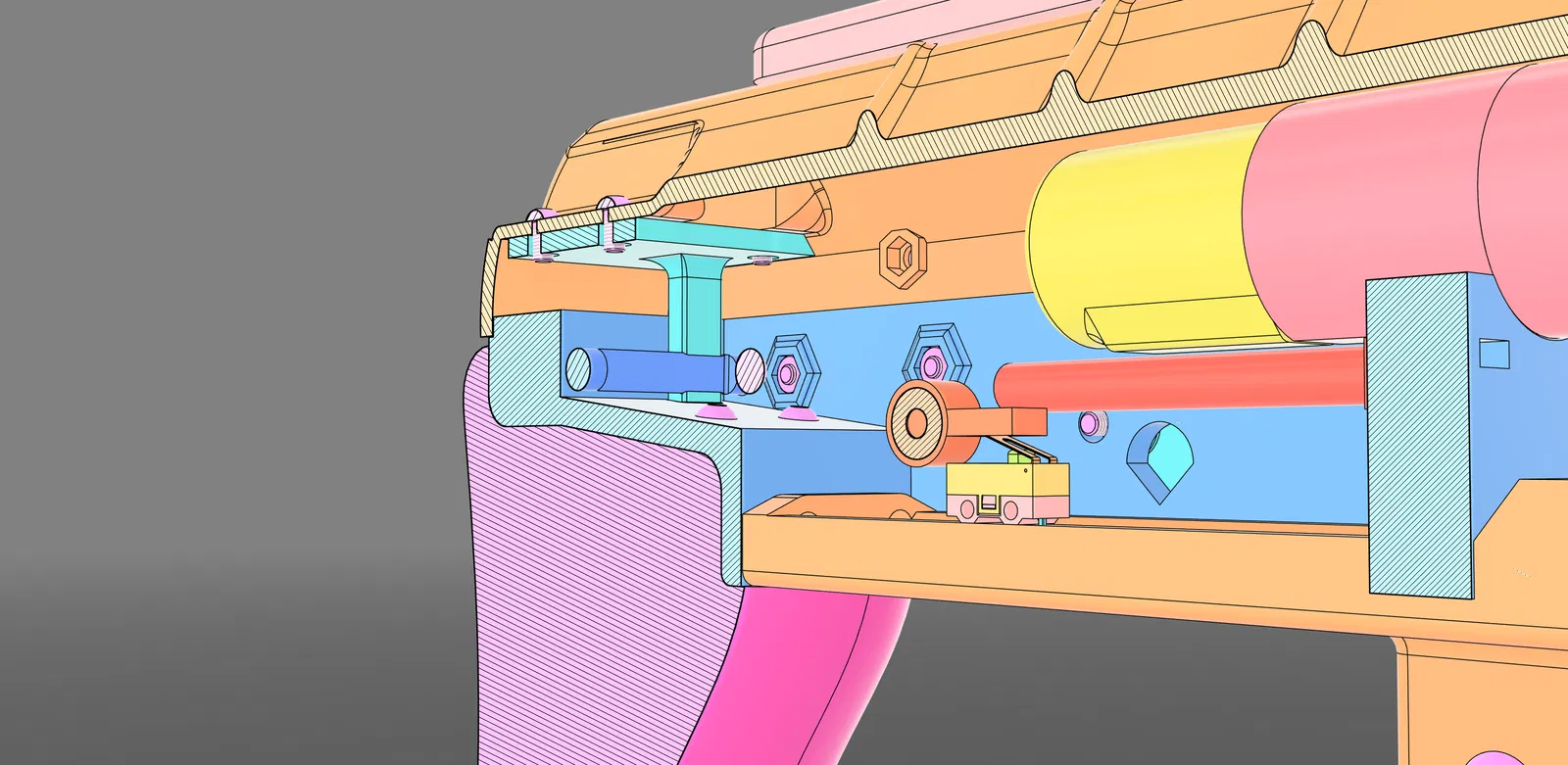 Các bộ phận mà bạn có thể gặp khó khăn nhất khi lắp khớp là phần khớp nối đuôi cá giữa thân trước và thân chính, đối với tôi nó khớp hoàn hảo, nhưng nếu máy in của bạn không được căn chỉnh tốt, nó có thể không khớp, và vì là khớp đuôi cá nên việc chà nhám cho vừa có thể khá khó khăn. Tôi khuyên bạn nên điều chỉnh mô hình CAD nếu bạn biết mình không thể in được dung sai đó. Bộ phận tiếp theo là ren trên ống giảm thanh, tôi đã phải điều chỉnh ren một hoặc hai lần dựa trên các bản in thử, điều tương tự cũng áp dụng ở đây. Hoặc, bạn có thể chỉ cần loại bỏ khớp đuôi cá, nó không cần thiết lắm.