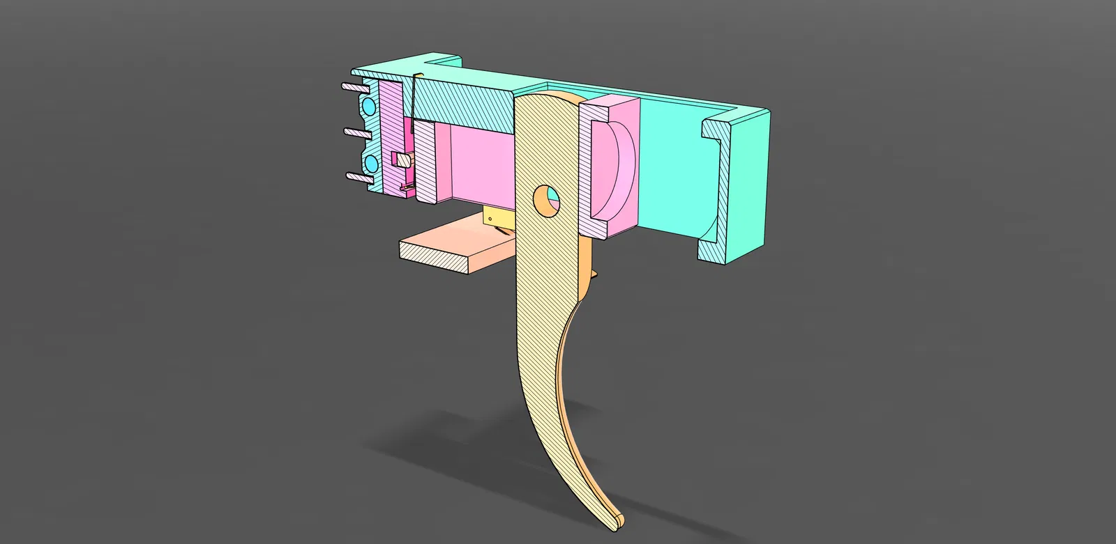 Dây cho bộ chọn chế độ bắn và cò súng chạy qua nắp liên kết cò súng ở bên trái súng.
