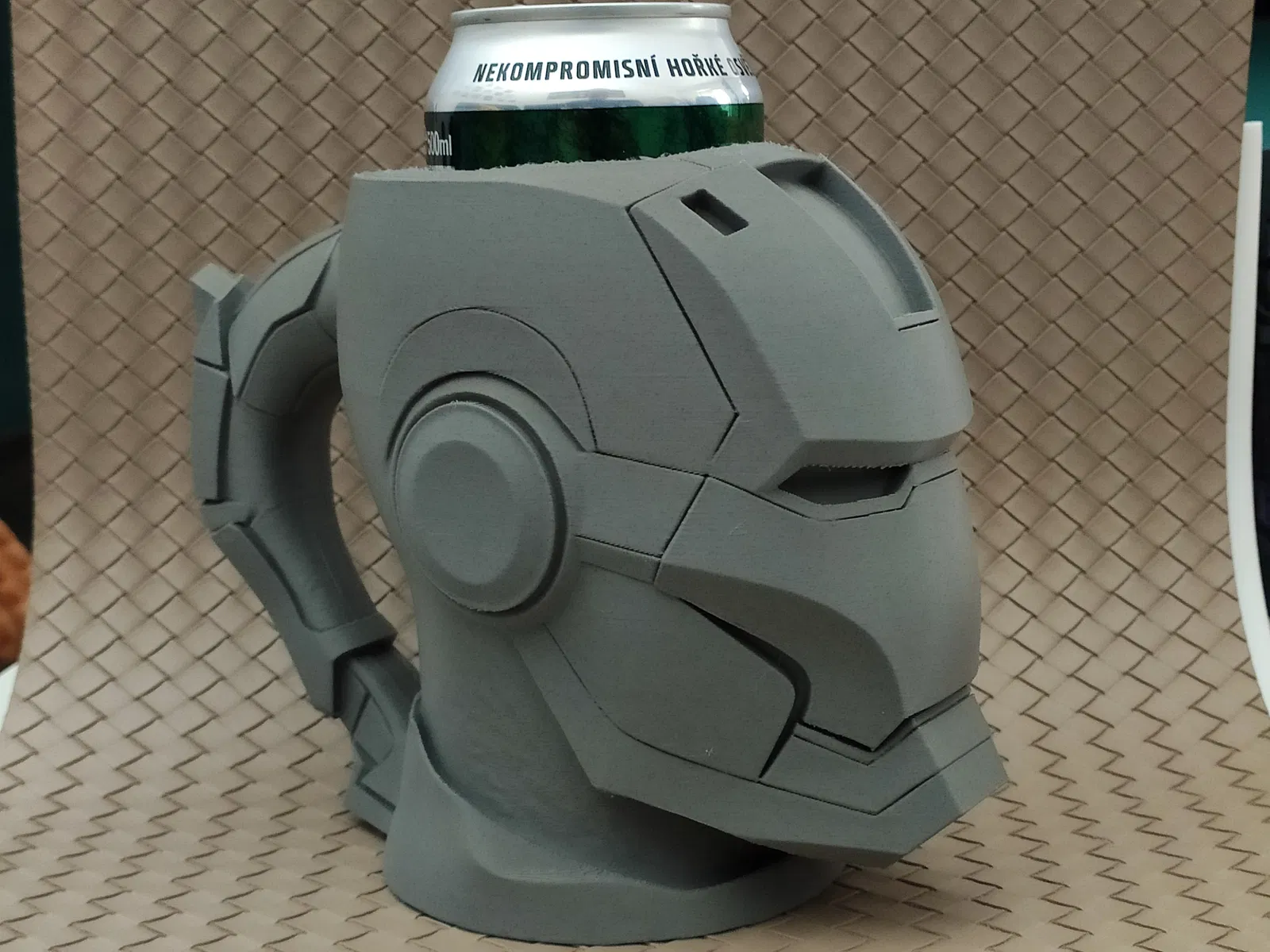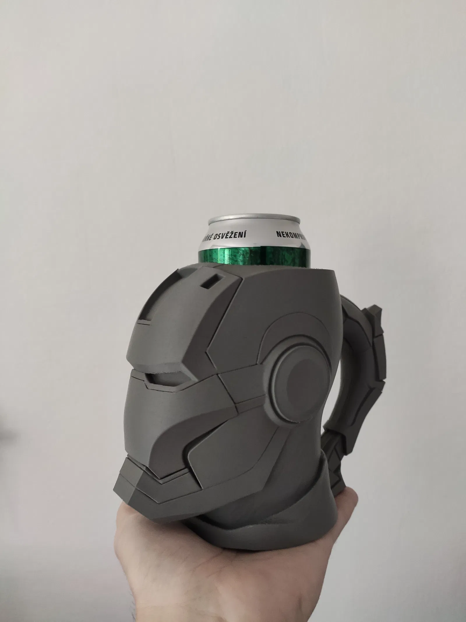 Kệ giữ lon kiểu IronMan, vừa với lon 0.5L. Có sẵn bộ phận chèn cho lon 12oz hoặc 330ml (slim). In bằng PLA với cài đặt đề xuất. Một món đồ trang trí độc đáo cho bàn làm việc hoặc phòng khách của bạn.