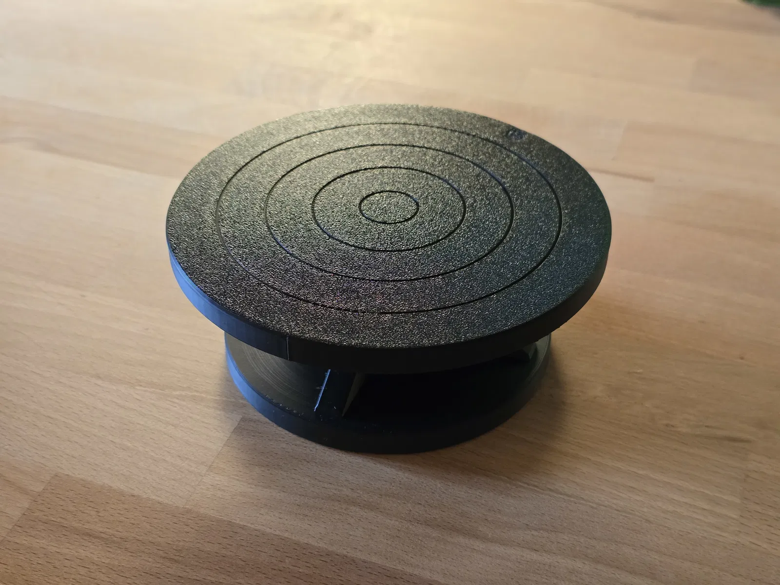 Bánh xe gốm mini tối giản, in 3D, dùng cho dự án đất sét nhỏ hoặc làm bàn xoay. Quay mượt mà nhờ vòng bi 608 tiêu chuẩn. Thiết kế đơn giản, dễ lắp ráp, chỉ cần ép vòng bi vào đế và đặt mặt trên lên là xong.