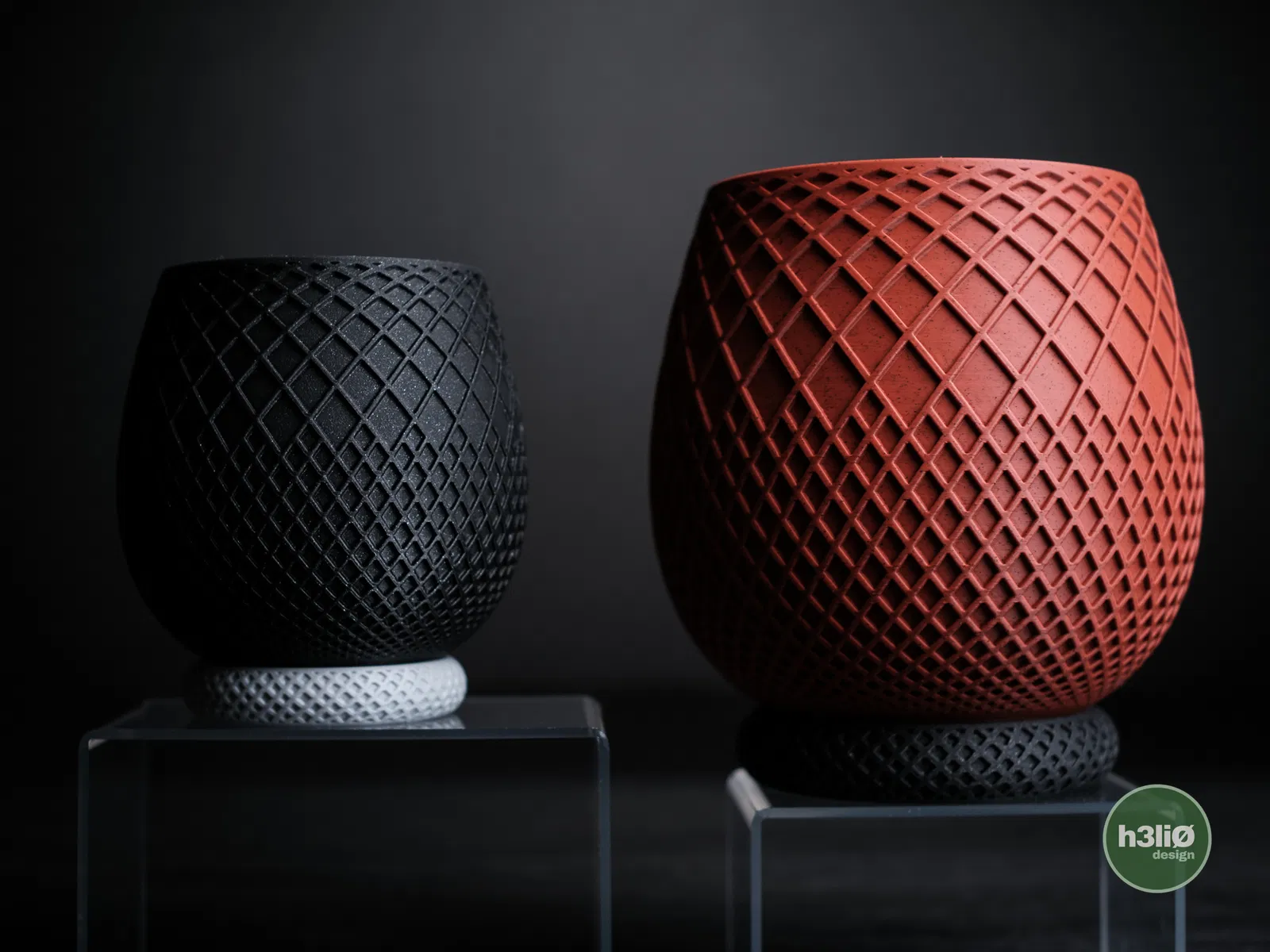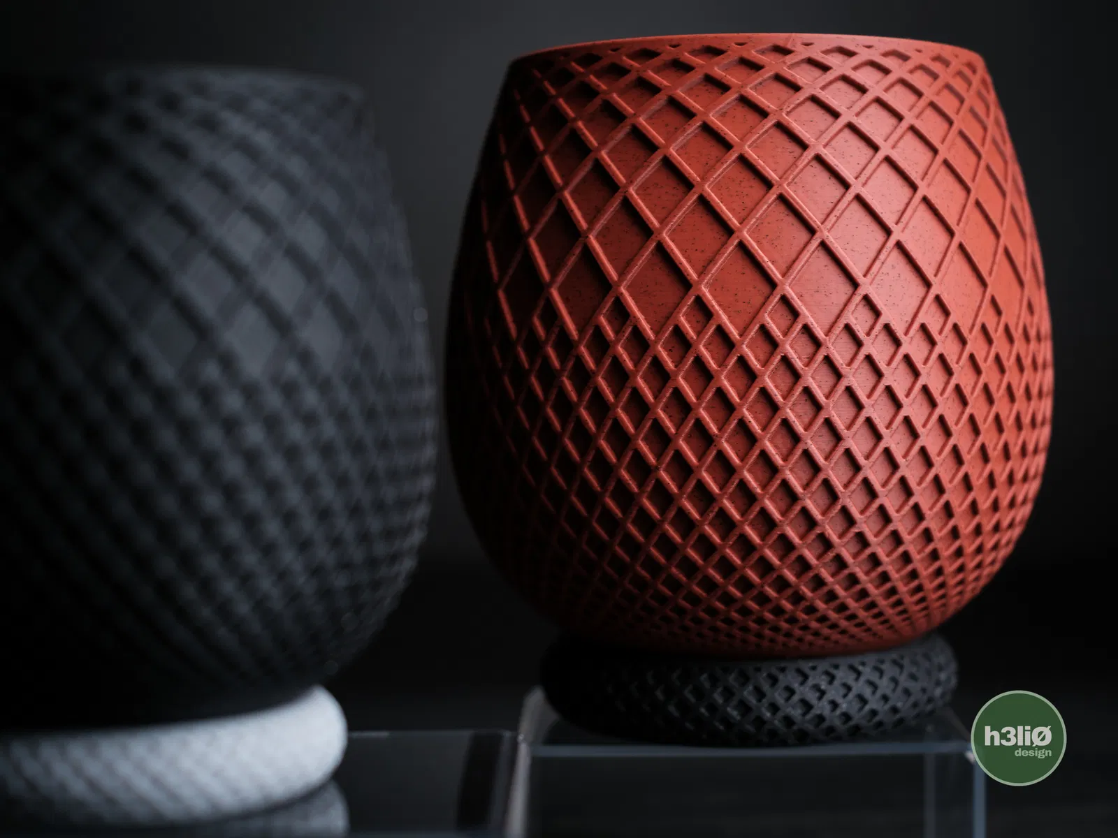 Ảnh chụp mẫu in bằng sợi PLA mờ và PLA vân đá cẩm thạch.
