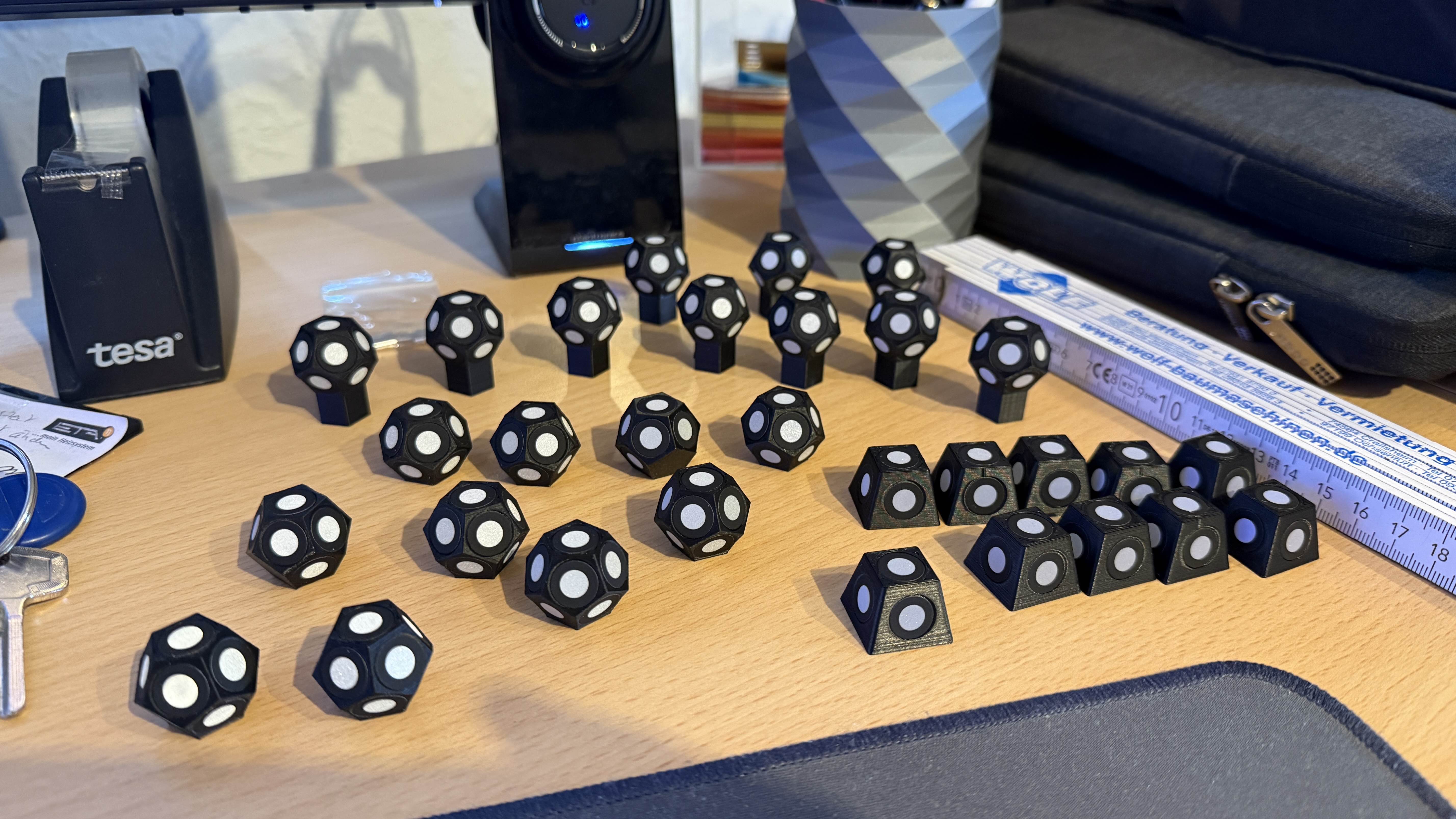 Bộ sưu tập các Vạch dấu 3D cho Quét 3D, có lỗ nam châm 6x3mm in sẵn. Dùng với Creality Raptor Pro hoặc các máy quét khác. Cần vạch dấu phản quang đường kính ngoài 10mm, trong 6mm. Có thể in tất cả trong một lần in.