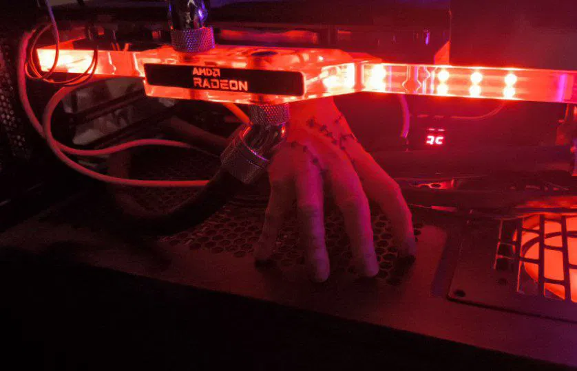 Thing Gia Đình Addams được làm lại thành cái chống card đồ hoạ. Tui in bằng gỗ PLA, không cần support, xong vẽ lên bằng viết lông dầu. Giờ thì nó đỡ cái card đồ hoạ của tui rồi.
