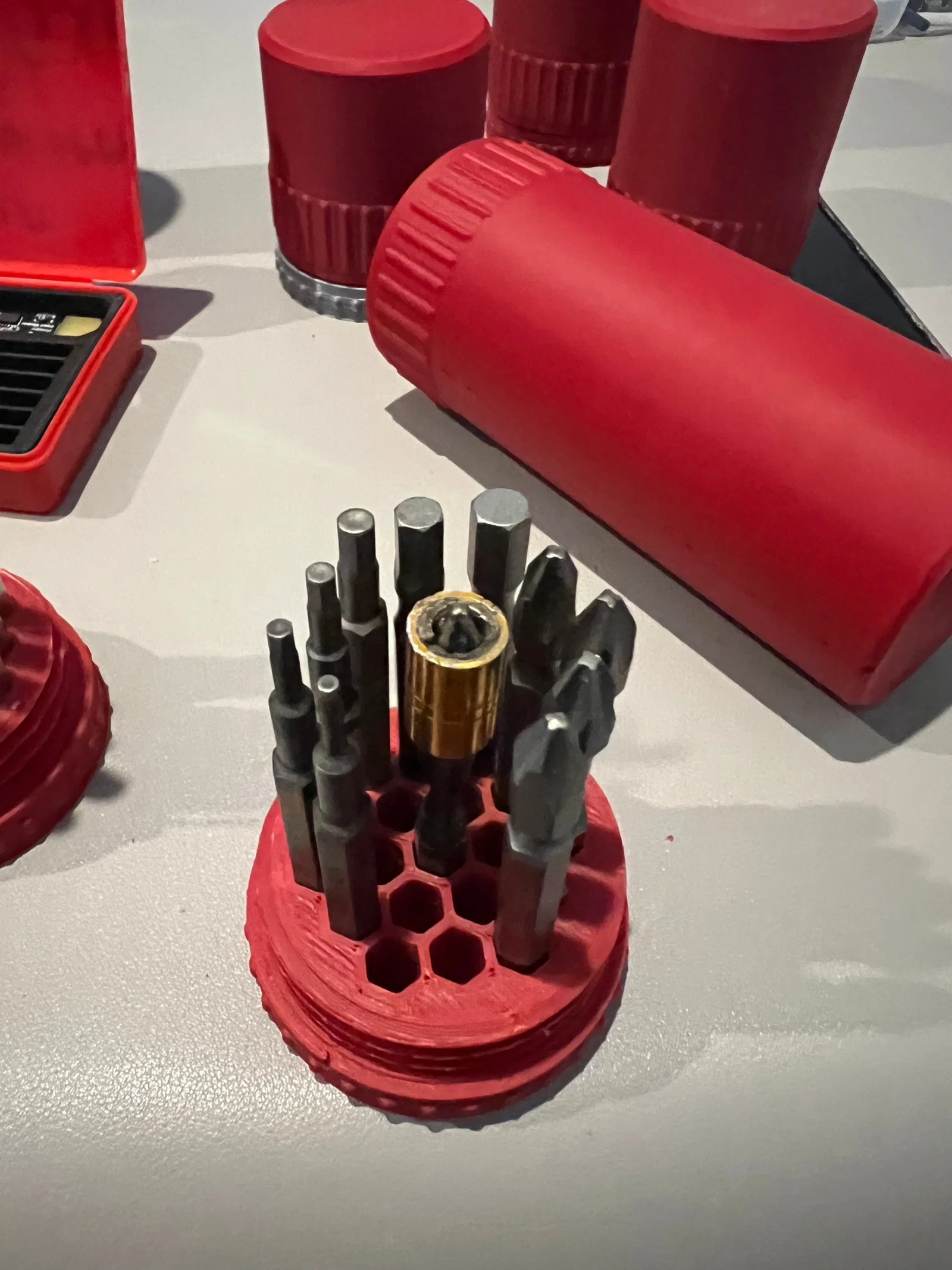 Hộp đựng này được thiết kế để lưu trữ các mũi khoan lục giác, mũi tua vít và các loại tua vít lục giác khác. Một giải pháp đơn giản và hiệu quả để giữ cho bộ dụng cụ của bạn luôn gọn gàng và dễ tìm.