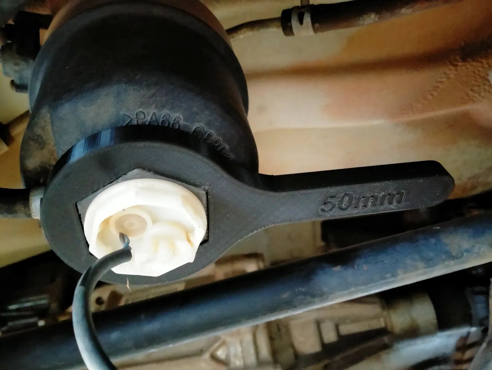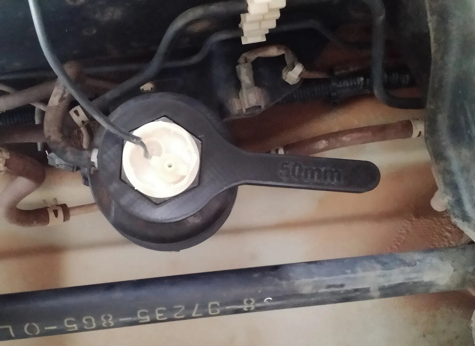 Đây là cái cờ lê đơn giản để tháo/siết nắp bộ lọc nhiên liệu trên xe Holden RC Colorado và Isuzu DMax (2008-2011), nơi bộ lọc nằm dưới gầm xe cạnh thanh ray khung gầm bên trái. Cái cờ lê có đai ốc lục giác 50mm để trượt lên nắp bộ lọc nhiên liệu sau khi rút dây cảm biến ra, và tay cầm ngắn cho phép nó nằm gọn giữa thanh ray khung gầm & thanh xoắn và xoay khoảng 70 độ.