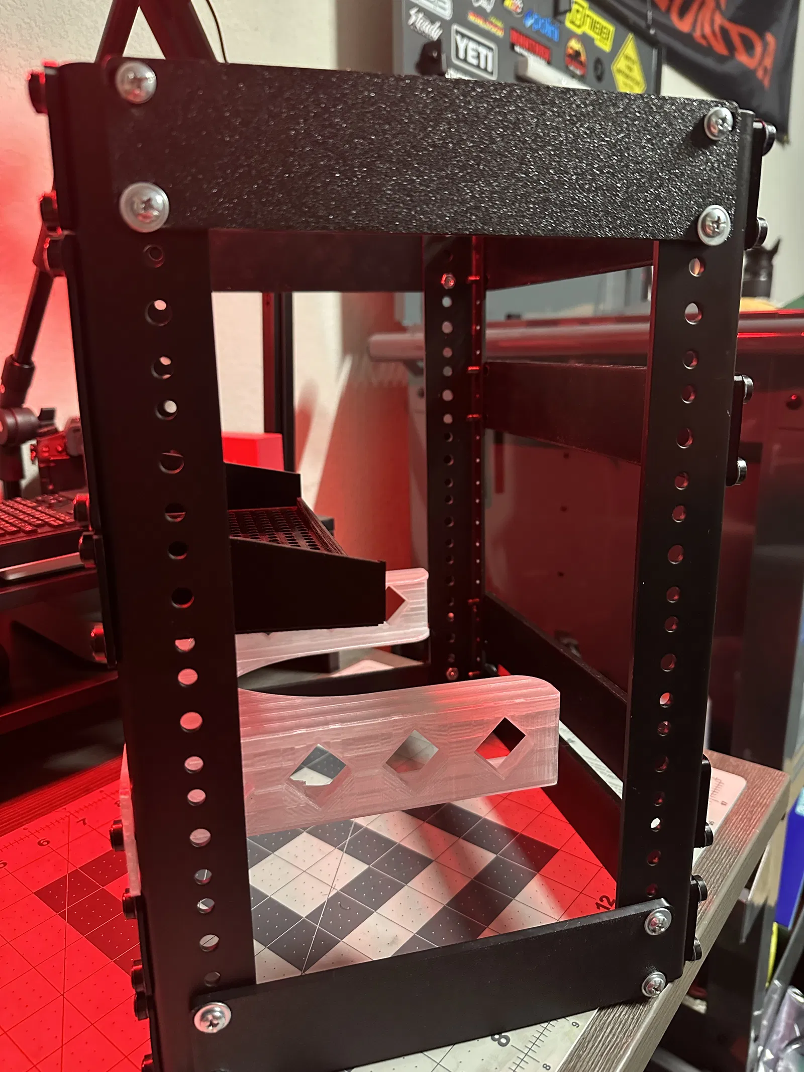Tự làm kệ 10 inch bằng các thanh dày để làm cấu trúc. Đã cập nhật thêm một số thanh ngắn hơn. Có thể dùng chung với ray rack để tự làm kệ.