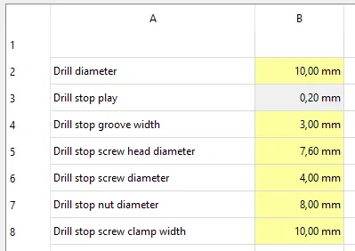 Cục chặn độ sâu mũi khoan theo tham số cho mũi khoan. Dùng để khoan nhiều lỗ với cùng một độ sâu dễ dàng. Cần đai ốc M4 và bu lông M4x16. Hỗ trợ file STEP và Prusa Slicer.