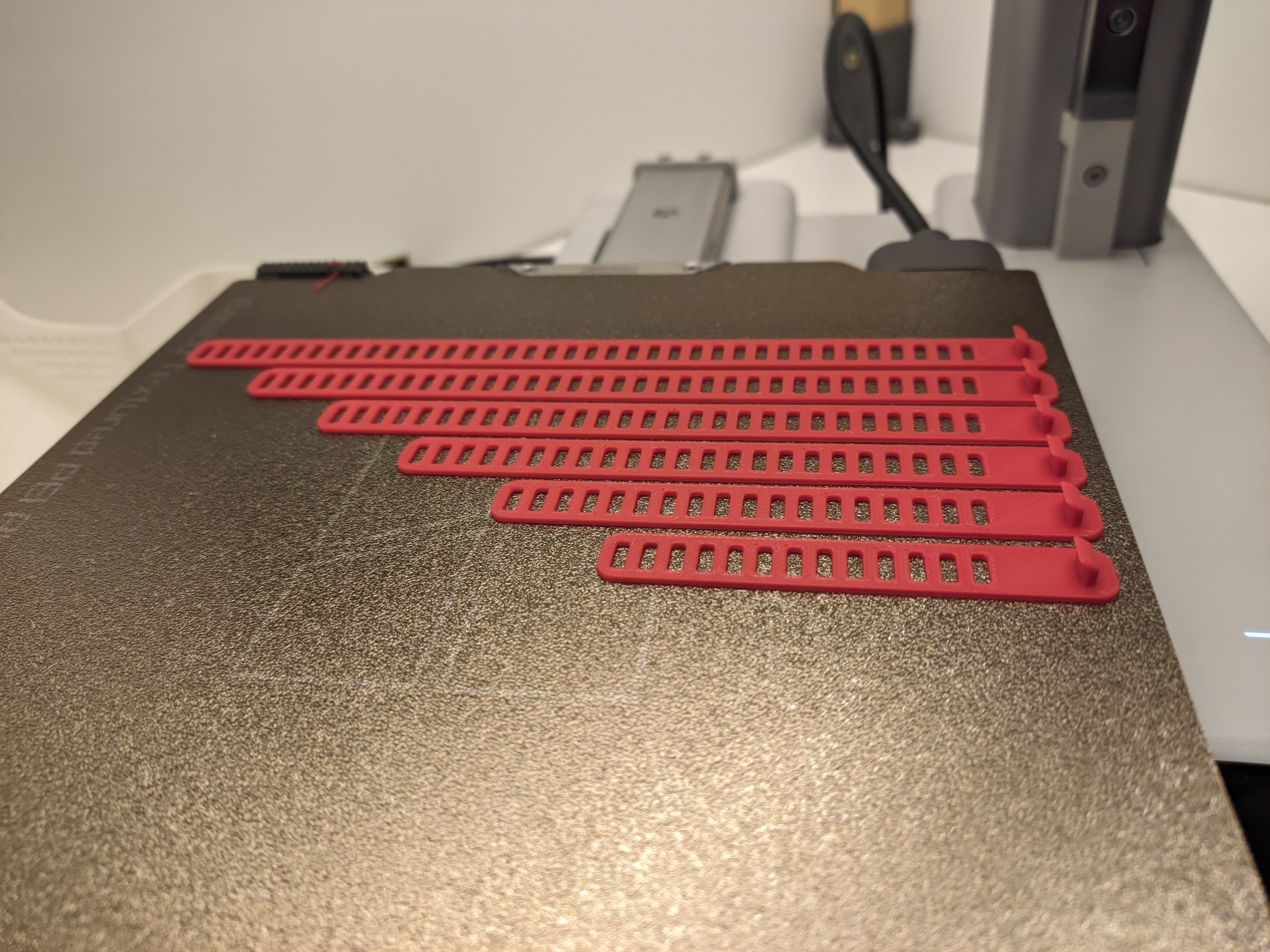 Sắp xếp dây cáp của bạn một cách dễ dàng với những dây rút cáp in 3D này, có sẵn nhiều kích cỡ linh hoạt từ 7 cm đến 25 cm.