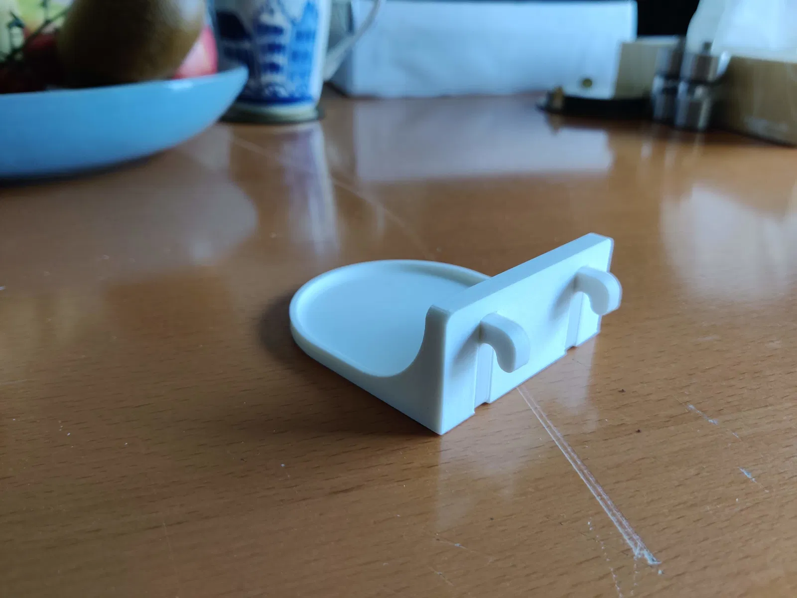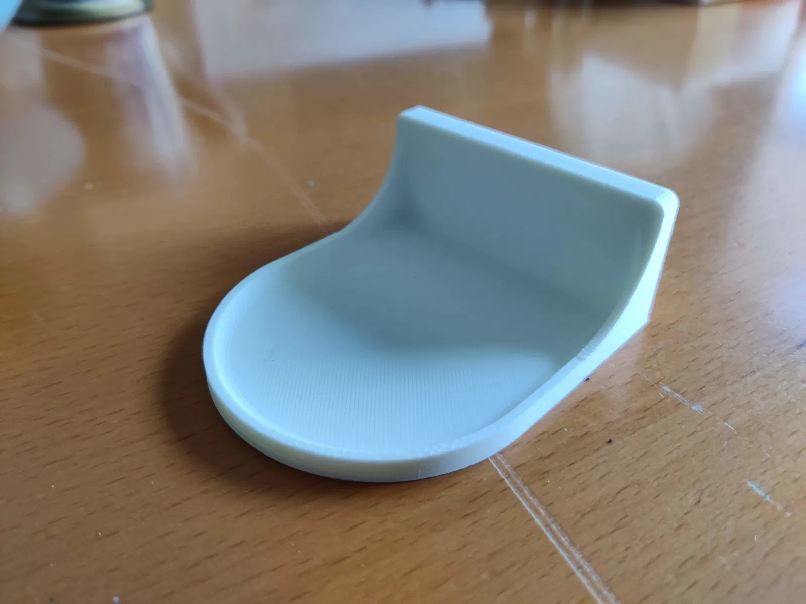 Bản thân kệ được in phẳng trên bàn in mà không cần hỗ trợ. Các móc nhỏ được in riêng và chỉ cần trượt vào vị trí. Điều này đảm bảo hướng in tối ưu để tăng độ bền. Tôi đã dùng một ít keo siêu dính để cố định chúng, nhưng mọi thứ vẫn ổn ngay cả khi không dùng keo.