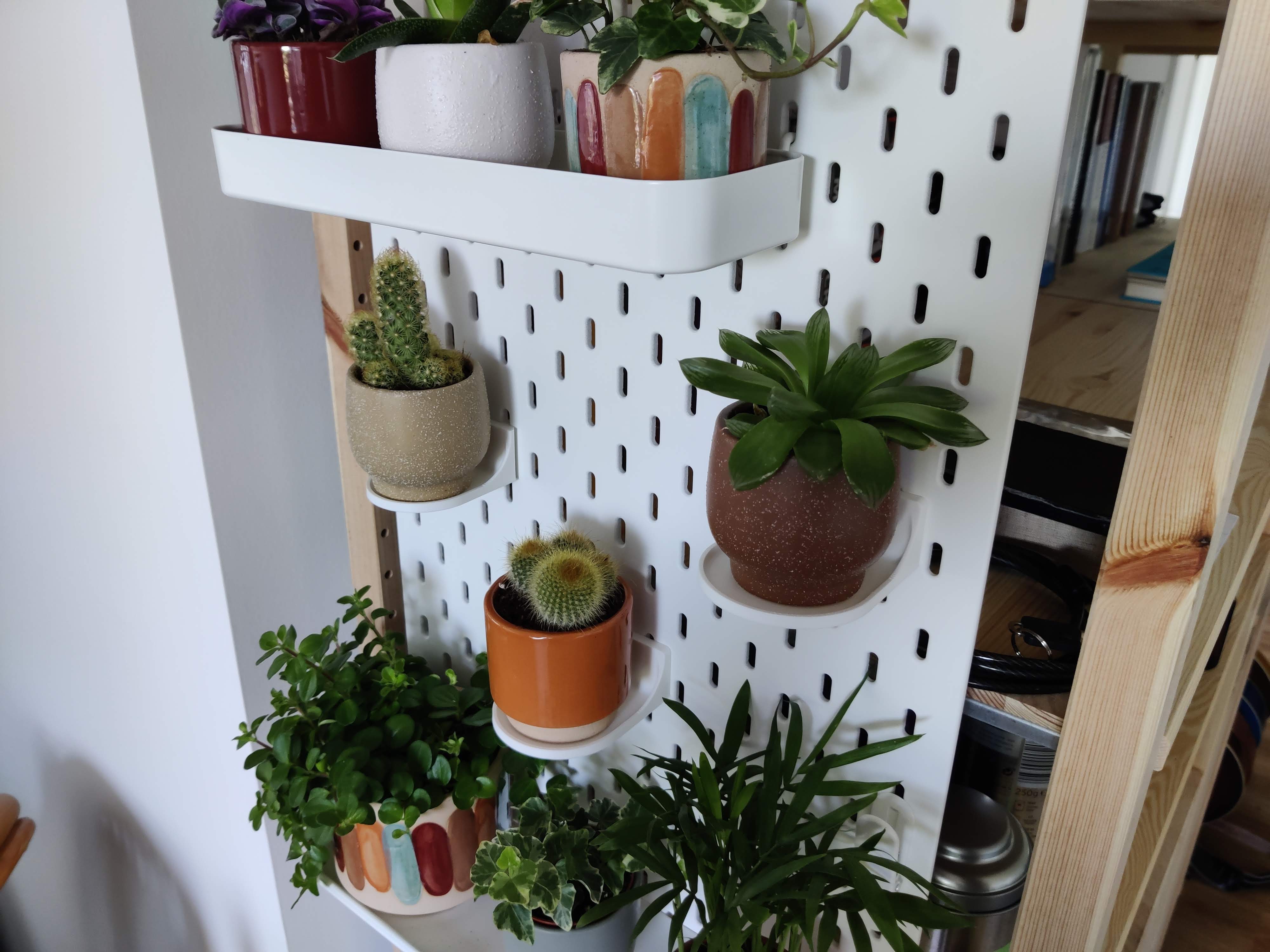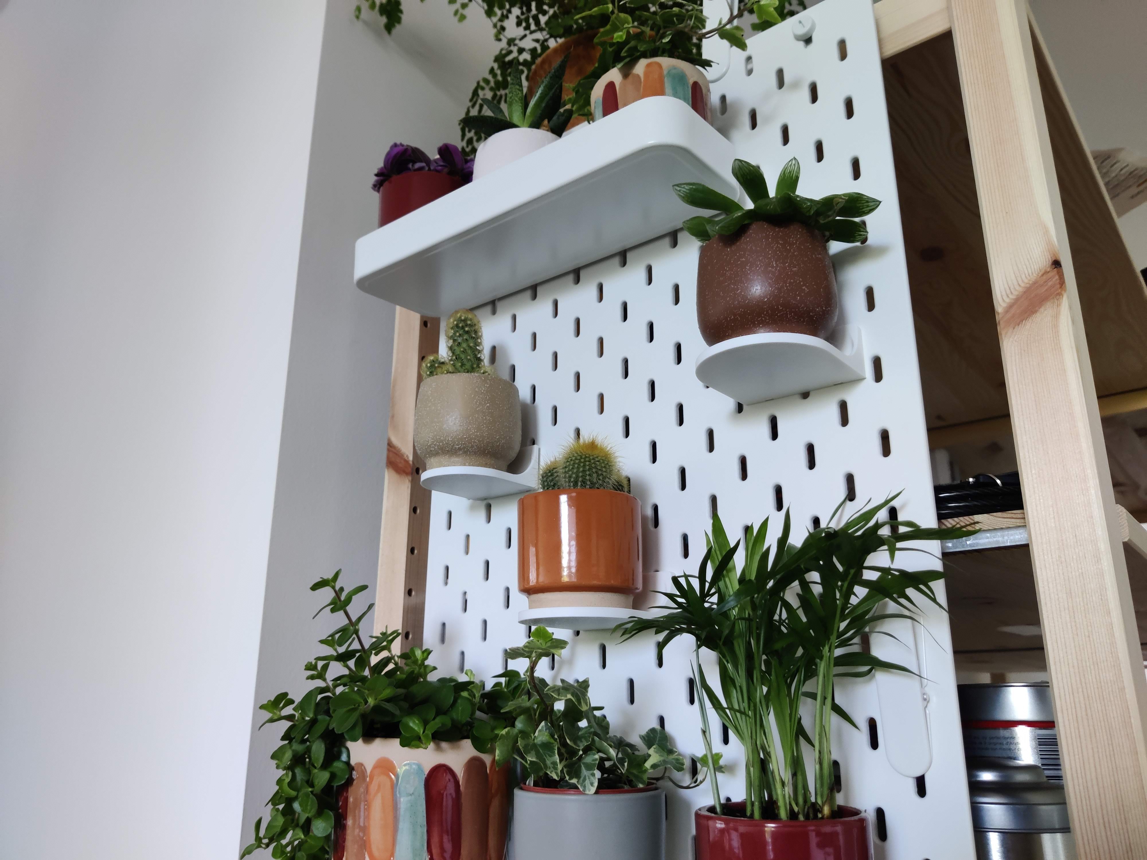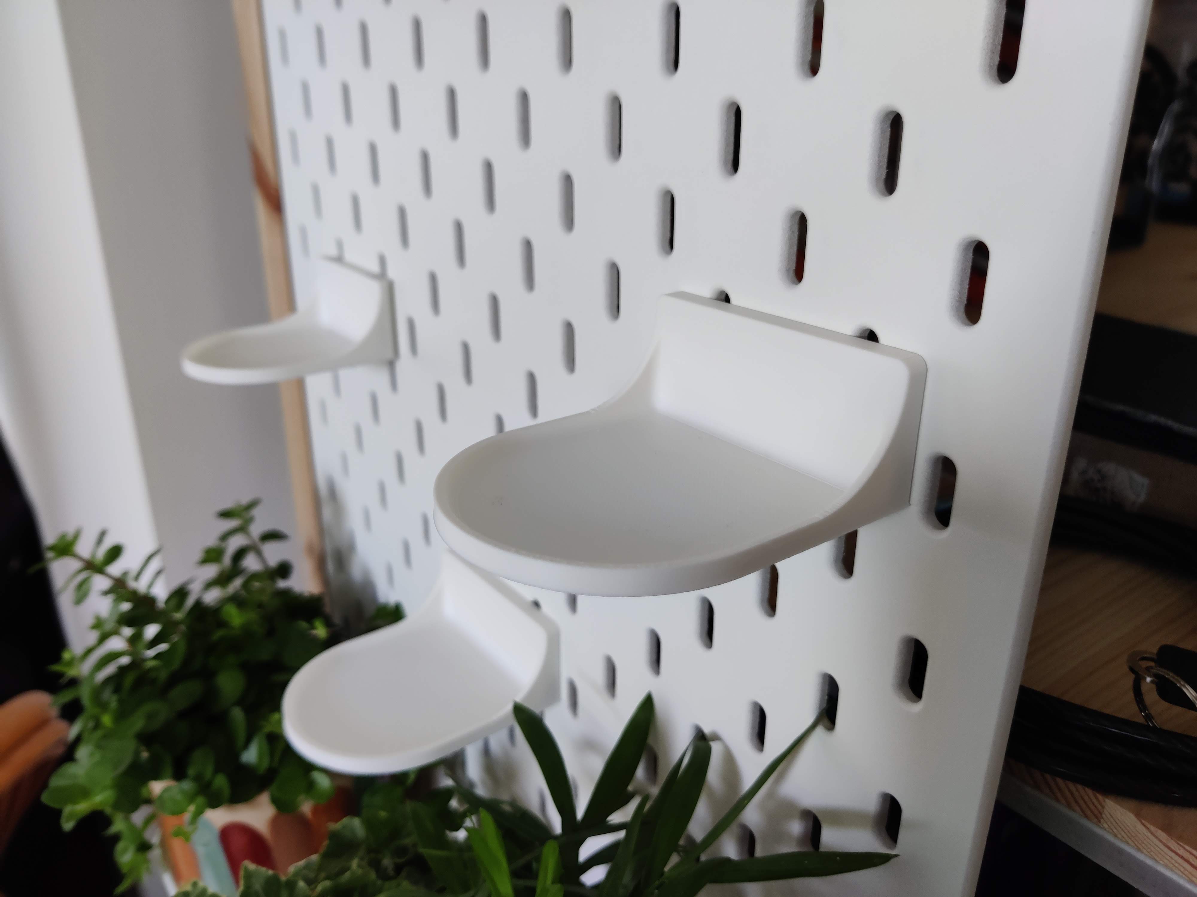 Biến tấm IKEA Skadis thành khu vườn mini với kệ trồng cây nhỏ gọn. Kệ có ba kích cỡ và dễ dàng lắp đặt. In phẳng, không cần hỗ trợ, chỉ cần trượt móc vào vị trí. Vật liệu tiết kiệm, bền bỉ, lý tưởng cho các chậu cây nhỏ.