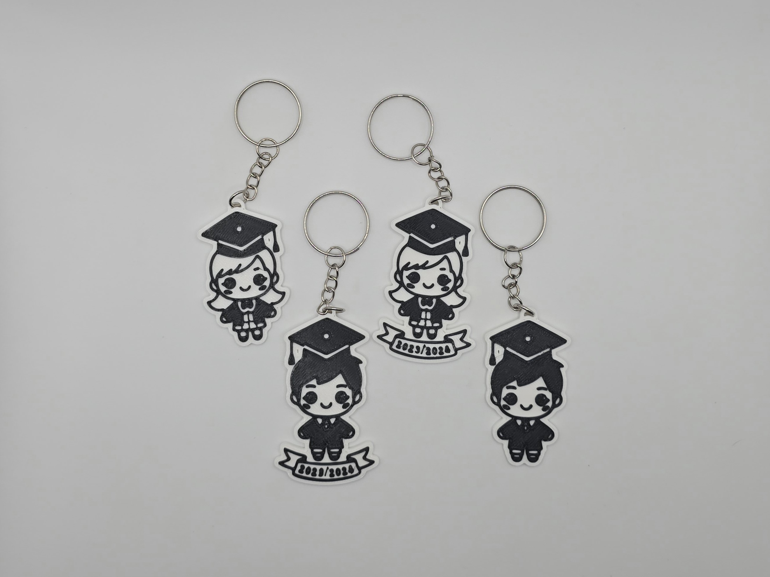 Tạo ngay bộ móc khóa tốt nghiệp cute cho riêng bạn hoặc làm quà tặng ý nghĩa. Móc khóa có thể tùy chỉnh tên, in hình dễ dàng với PLA, infill 15%, layer height 0.20mm, không cần supports. Hãy ủng hộ tác giả nếu bạn thích nha!