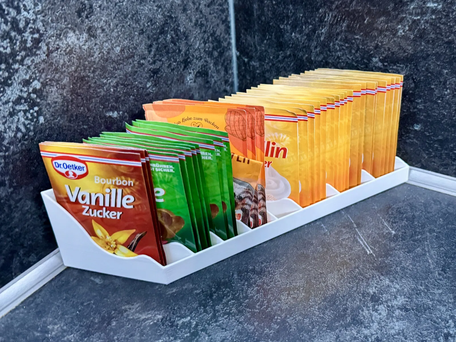🟢 8 ngăn để chia các gói (5 ngăn hẹp hơn và 3 ngăn rộng hơn) 🟢 Tối ưu hóa cho các định dạng gói đồ làm bánh phổ biến (ví dụ: Dr. Oetker) 🟢 Sắp xếp theo đường chéo để xem nhanh 🟢 Thiết kế mỏng cho khu vực lưu trữ hẹp 🟢 Không cần vật liệu hỗ trợ