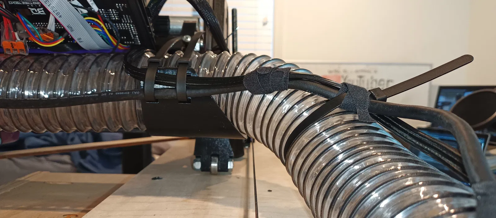 Tôi đang chạy dây nguồn router và bộ điều khiển dọc theo ống hút chân không. Dây được quấn bằng băng dính gai với ống hút chân không. Thật không may, dây làm cho ống hút chân không nhô ra khỏi móc nhiều hơn nữa. Không phải là vấn đề lớn, ngoại trừ việc...