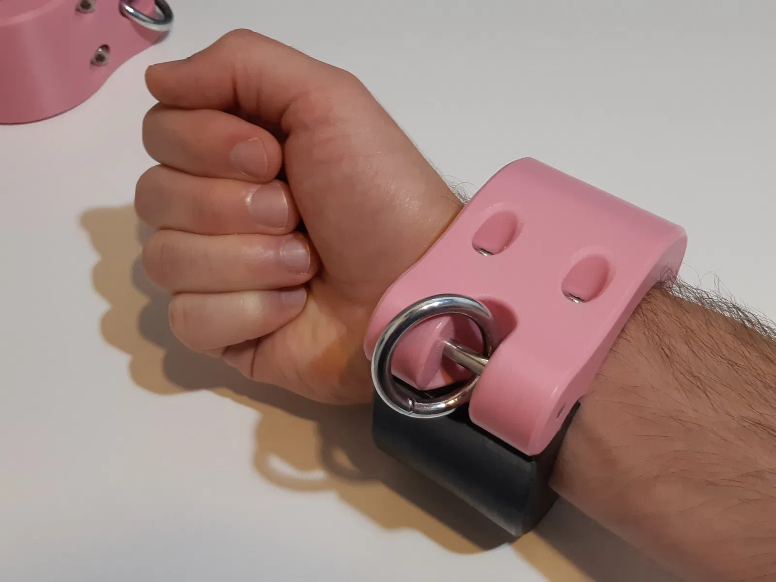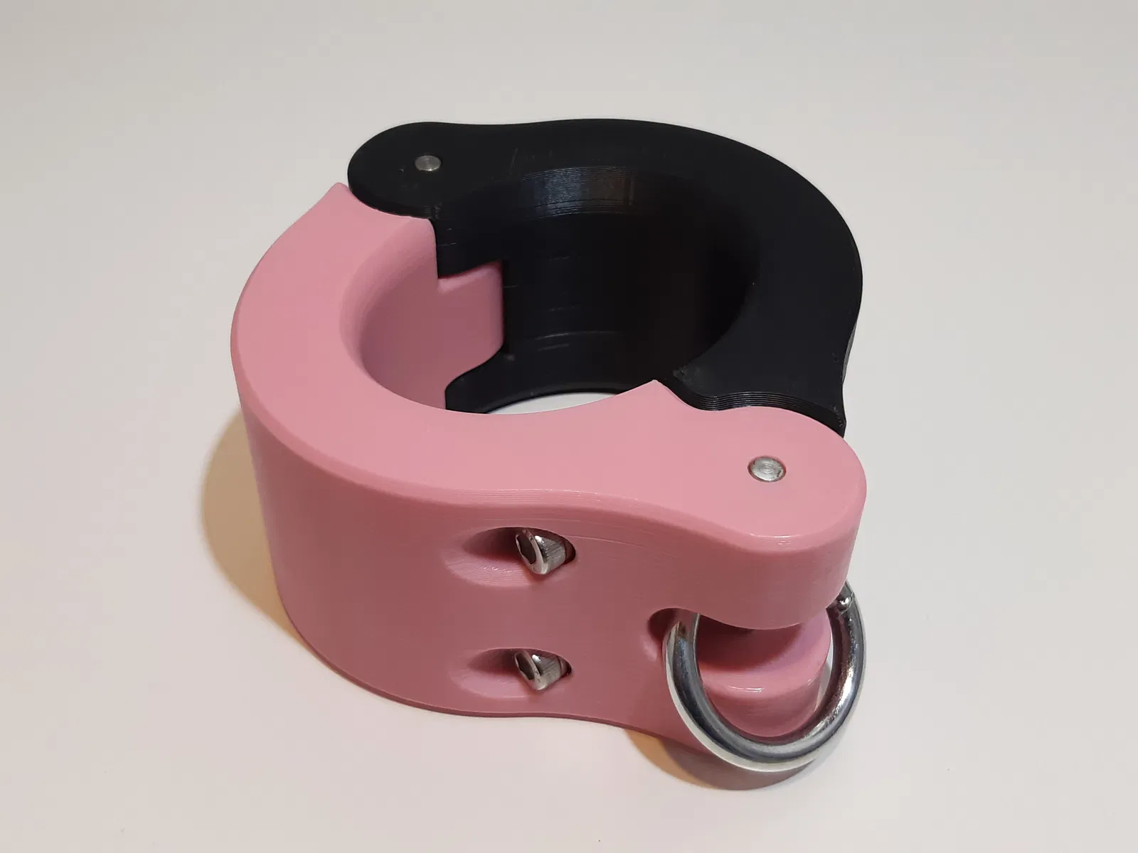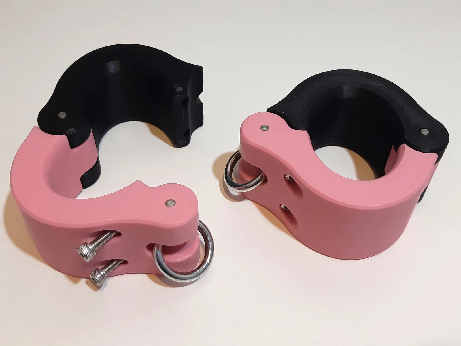 Đây là mẫu còng có thể in được với kích thước có thể điều chỉnh. Mỗi chiếc còng gồm hai phần được in riêng biệt. Chúng được khóa bằng ốc lục giác chìm (socket head screws) và đai ốc lục giác (hex nuts) được lắp vào trong quá trình in.