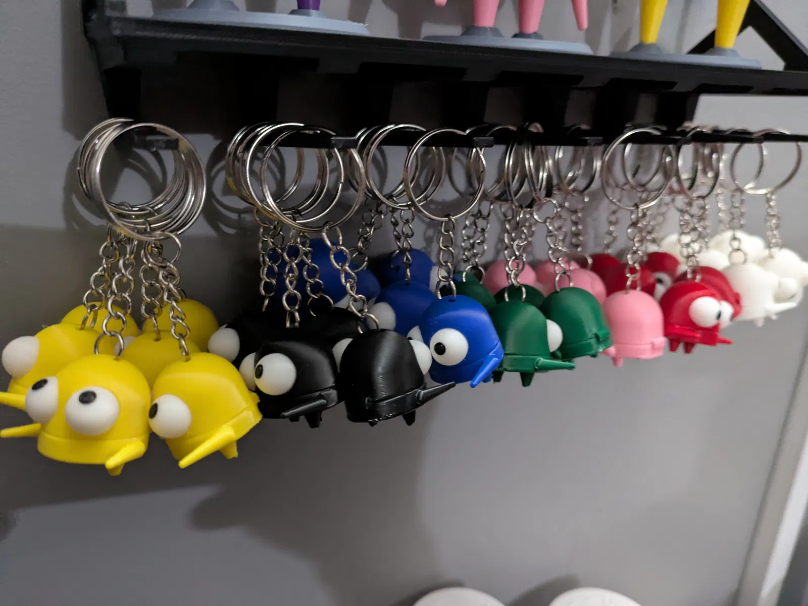 Tôi đã dùng một vỉ đựng nhẫn móc khóa giá rẻ mua trên mạng, nhưng dây hoặc sợi dây xỏ qua đỉnh cũng được.