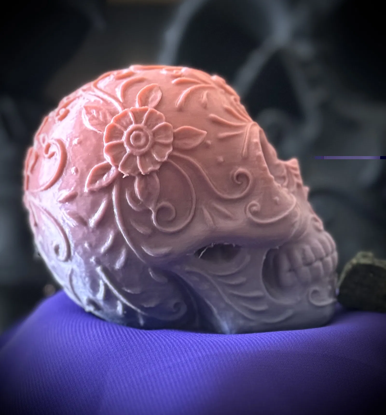 Mô hình đầu lâu Halloween với hoa văn chi tiết, được scan bằng Poly.cam. Tác giả thấy sản phẩm đẹp nên chia sẻ. Xem thêm các bản scan khác và sản phẩm của DeMambaPrints trên Etsy và TikTok nhé!