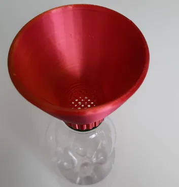 Phễu rót chai nước ngọt có gắn lưới lọc, giúp tách biệt phần rắn và lỏng, tiện lợi cho cả việc rót vào và rót ra. Sản phẩm này cần in kèm support.