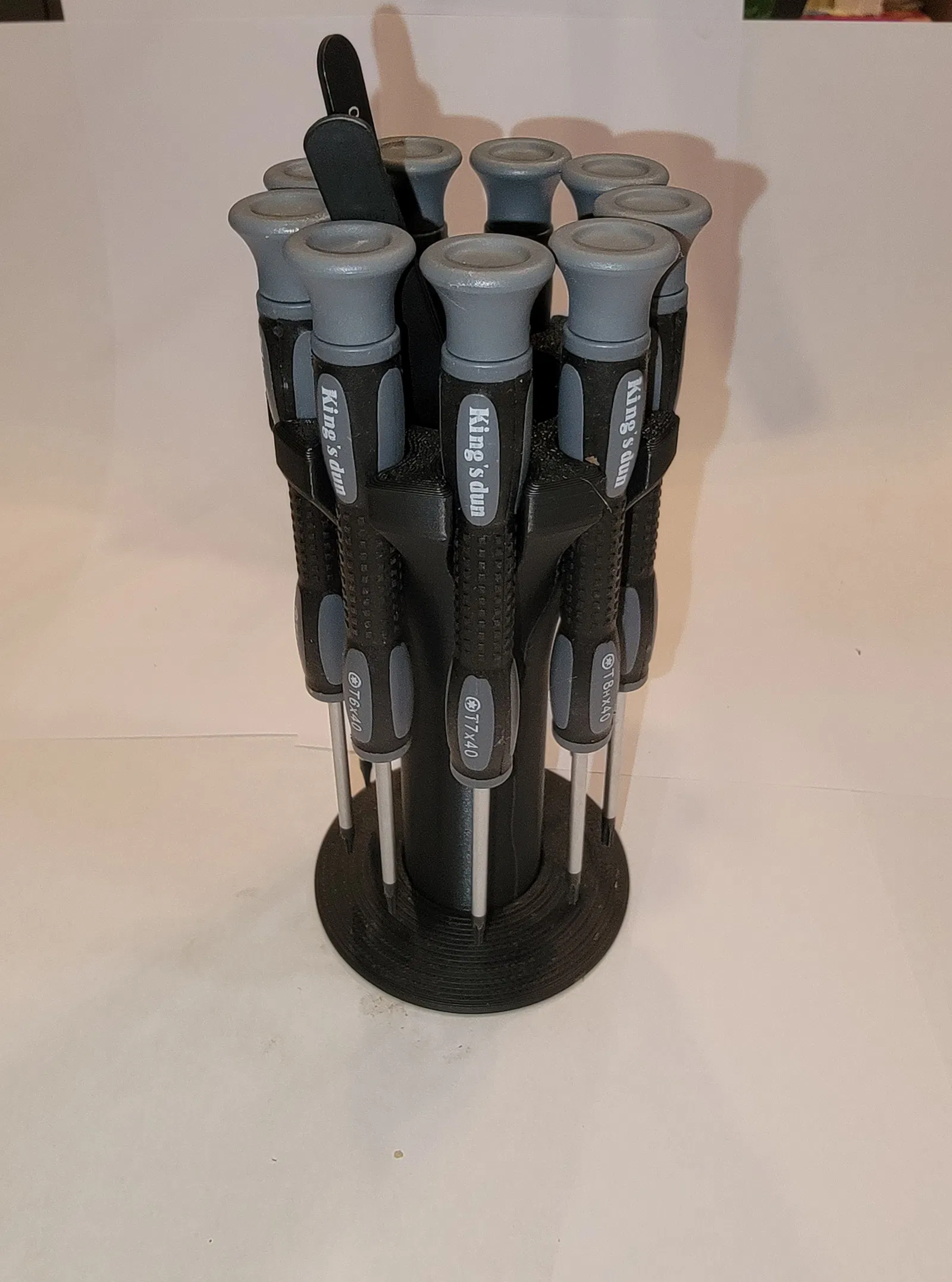 Giá đỡ dụng cụ kiểu Bàn Xoay (Lazy Susan) cho bộ tua vít King'sdun. Giữ được chín cây tua vít và có một lỗ ở giữa để đựng nhíp hoặc các dụng cụ nhỏ khác. Có sử dụng vòng bi 625.