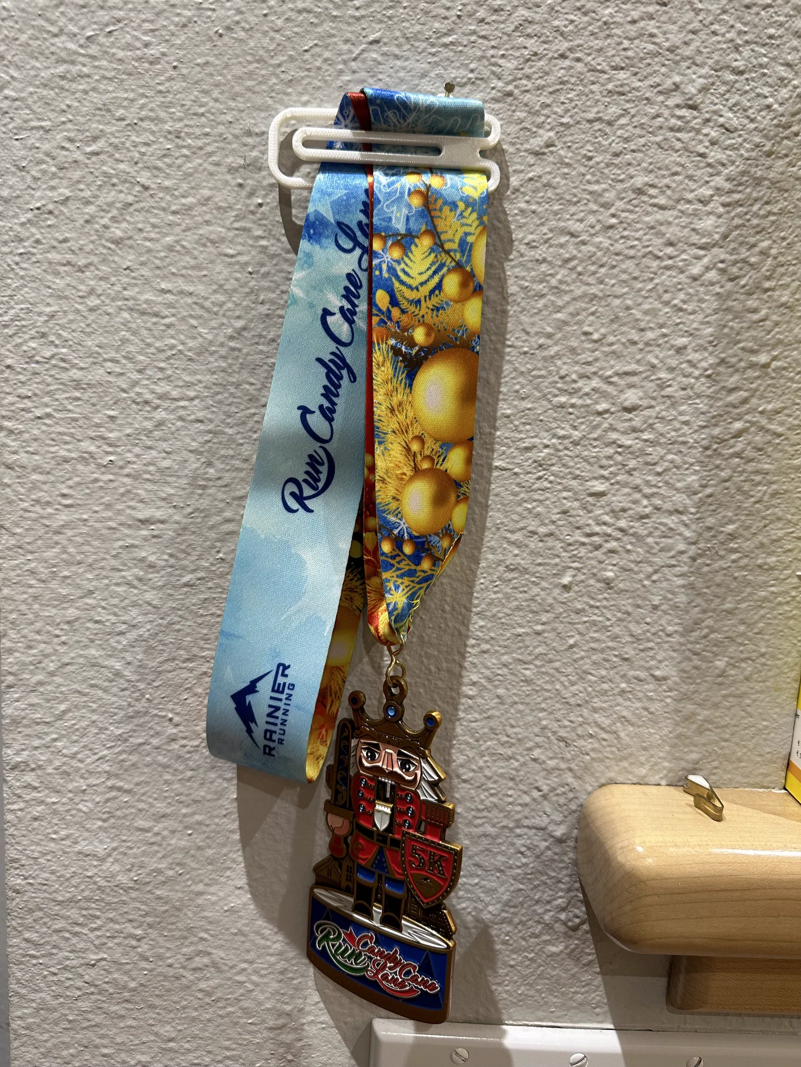 Kẹp treo tường để trưng bày bằng khen marathon và các loại huy chương khác. Cái kẹp này được in bằng PLA và có thể treo tường bằng móc treo tranh, rất tiện lợi để khoe những thành tích của bạn.