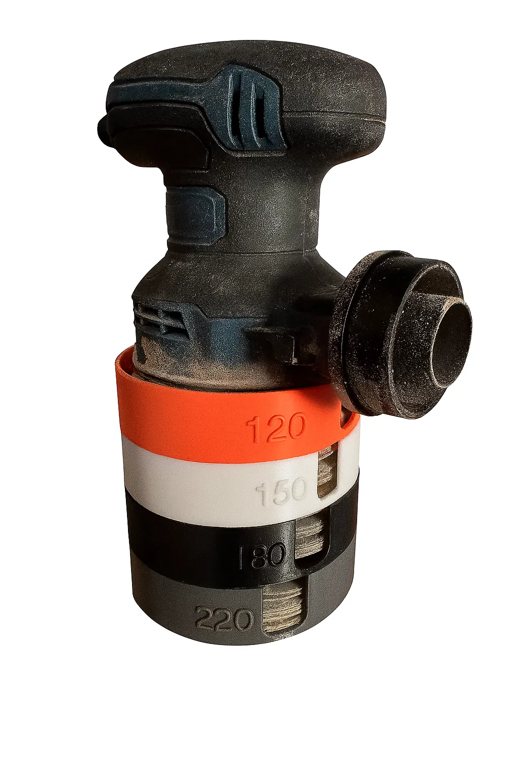 Bộ đế đựng đĩa chà nhám có thể xếp chồng lên nhau, tích hợp trụ dẫn hướng giúp căn chỉnh khi sử dụng với máy chà nhám quỹ đạo ngẫu nhiên. Phiên bản đầu có thể cần ấn mạnh hoặc điều chỉnh chiều cao trụ dẫn hướng để đĩa bám tốt hơn. Phù hợp in bằng PETG hoặc PLA tùy điều kiện nhiệt độ.