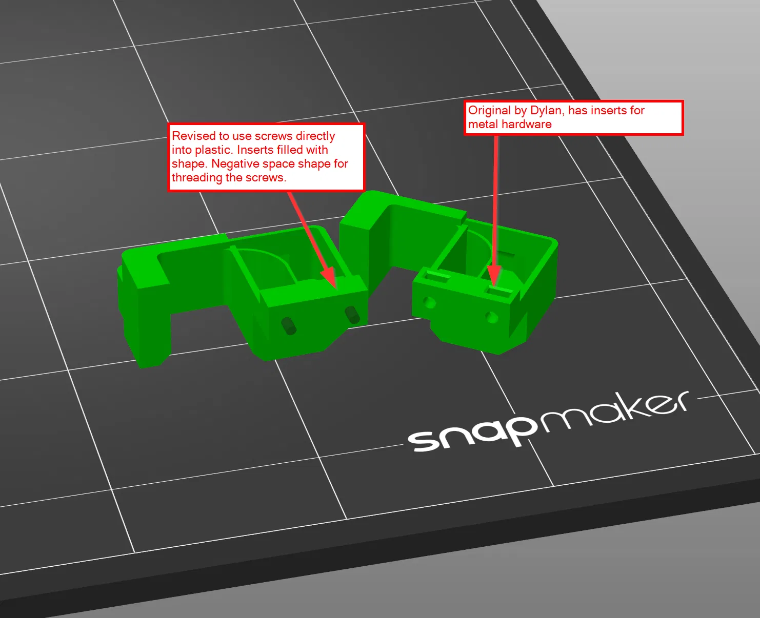 - File cho mod này có đính kèm ở đây, tương thích với Klicky probe. Bạn cũng sẽ tìm thấy phiên bản Đã sửa đổi. Mình đã chỉnh sửa nó để dùng không cần ốc kim loại - ống dẫn khí dùng vít gắn vô nhựa với bản sửa đổi này. Xem hình để biết chi tiết.