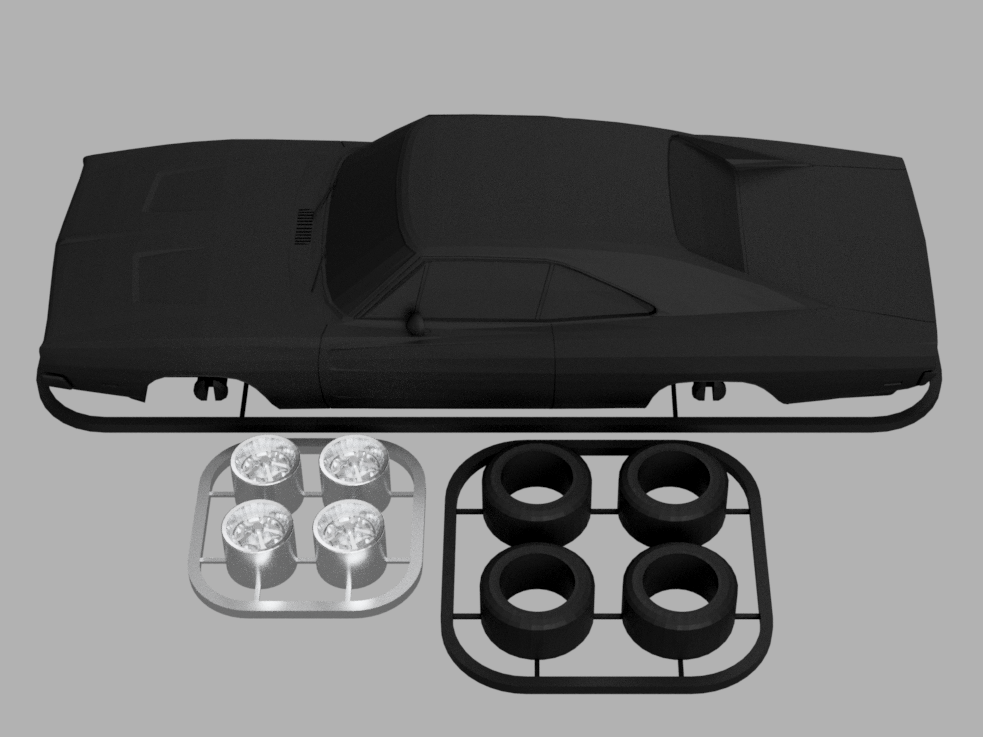 Tóm tắt Đây là mô hình xe Dodge Charger R/T (1969) theo phong cách kit card. Có một vài chi tiết đặc trưng có thể được khám phá. Sau khi in xong, mô hình có thể được lắp ráp với sự trợ giúp của các khớp nối tích hợp. Bánh xe có thể quay, nhưng xe sẽ không lăn.