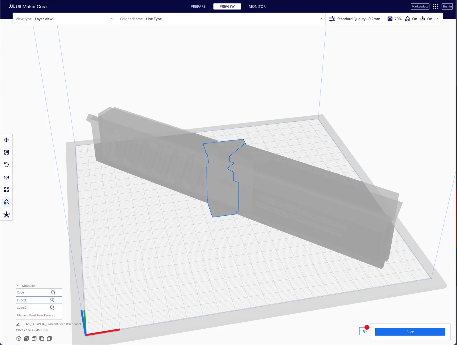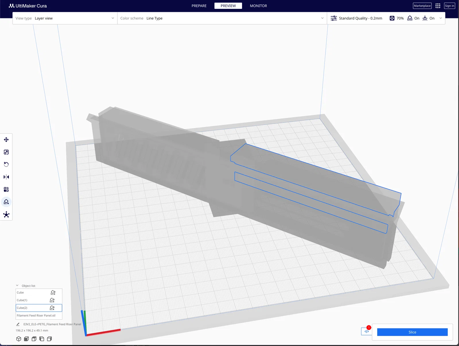 Đã tải lên tệp .3mf của bảng điều khiển phía sau có rãnh. Tệp này từ Cura, mà tôi đã sử dụng vào thời điểm đó để in trên Ender 3 V2. Tệp này sẽ không thể sử dụng trực tiếp với Orca, nhưng bạn có thể thấy các đối tượng đã thêm được sử dụng làm bộ chặn supports.