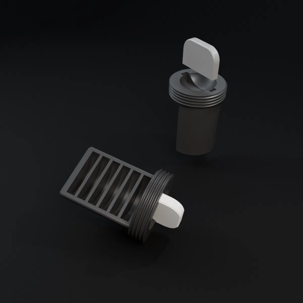 Cái hộp đựng pin CR2032 này có thể chứa 6 hoặc 10 viên. Kích thước là ~32x32x42mm hoặc ~32x32x61mm cho bản lớn hơn. Đã có thêm phiên bản 2 mảnh với tay cầm to hơn.