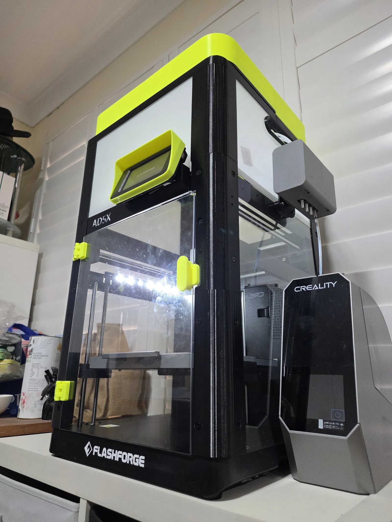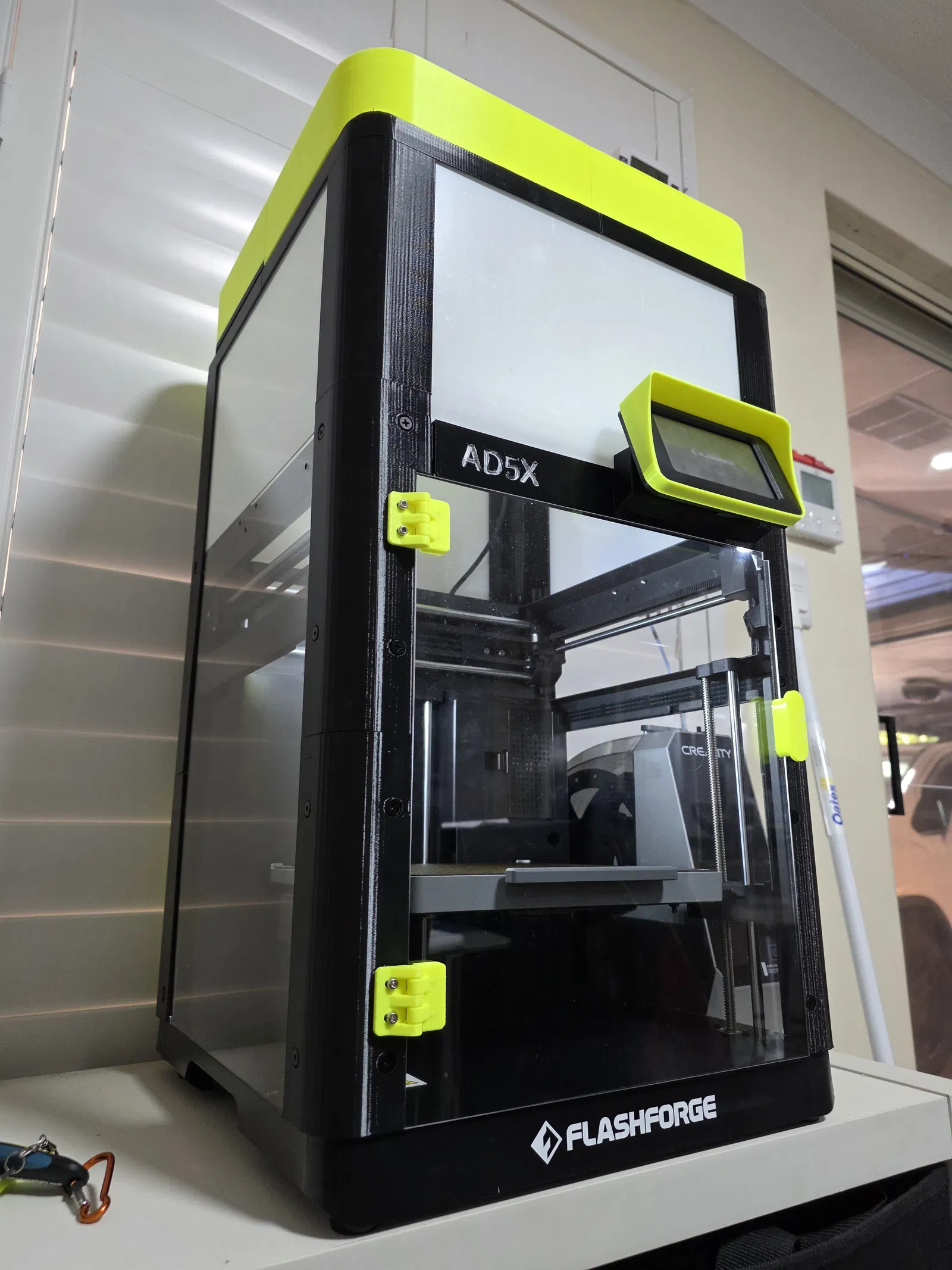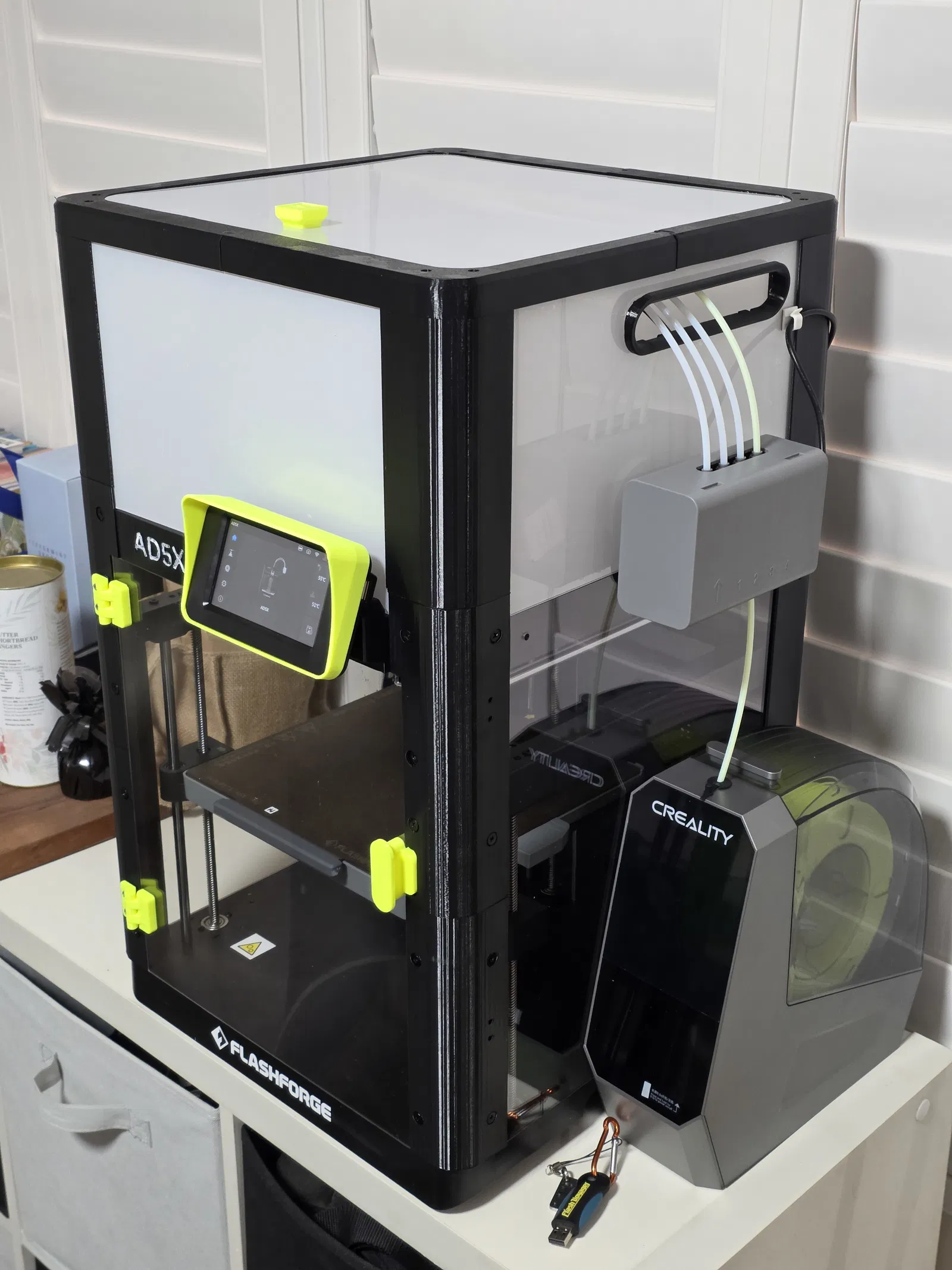 Bộ sưu tập nhỏ các phụ kiện và bản sửa đổi cho máy in 3D FlashForge Adventurer AD5X, bao gồm thùng rác, mui che màn hình & bút cảm ứng, và phần mở rộng trên.