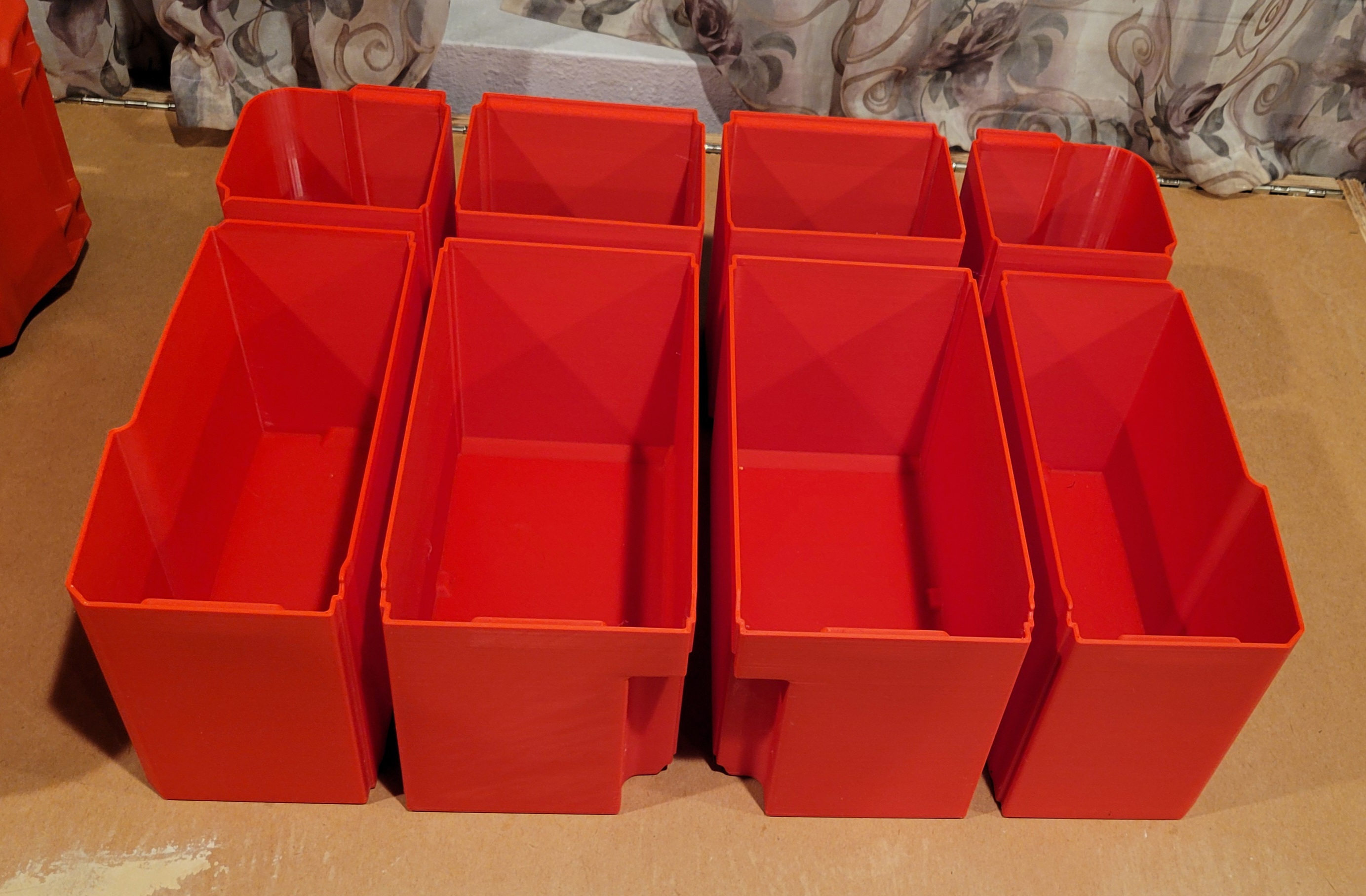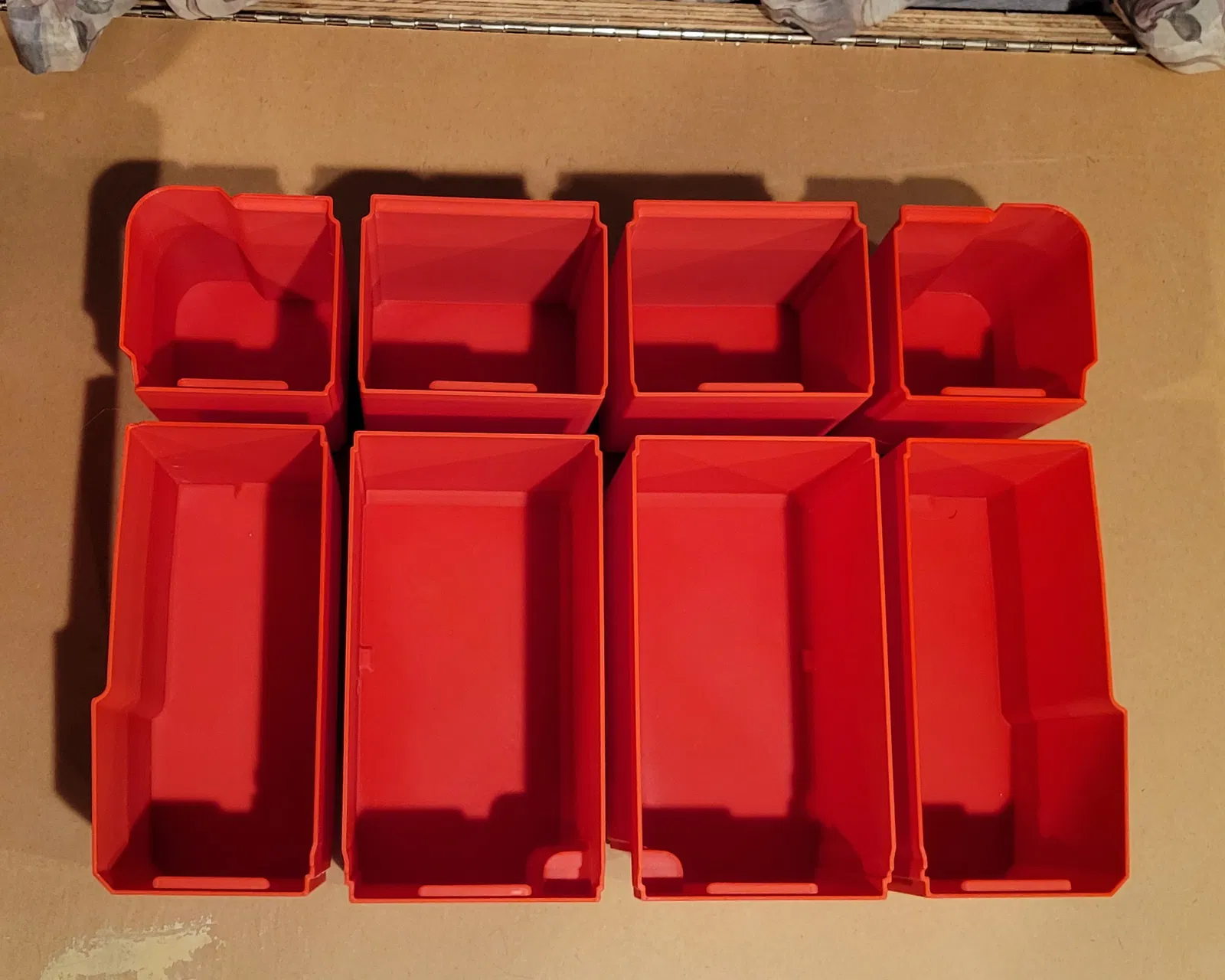Những cái này chắc chắn là một thử thách hơn so với việc chỉ sao chép các khay Milwaukee Packout Organizer khác. Không có khay nào để sao chép, và các khay mà tôi thấy trực tuyến không tuân theo các cạnh của các khoang riêng lẻ, mà chỉ làm vuông hình dạng bên trong và rất nhiều thể tích khả dụng đã bị mất. Tôi nghĩ tôi sẽ cố gắng tận dụng tối đa không gian lưu trữ bên trong có thể, điều này dẫn đến việc thiết kế "thú vị" - tái tạo và bù đắp tất cả các đường cong, góc cạnh và độ dốc của vỏ.