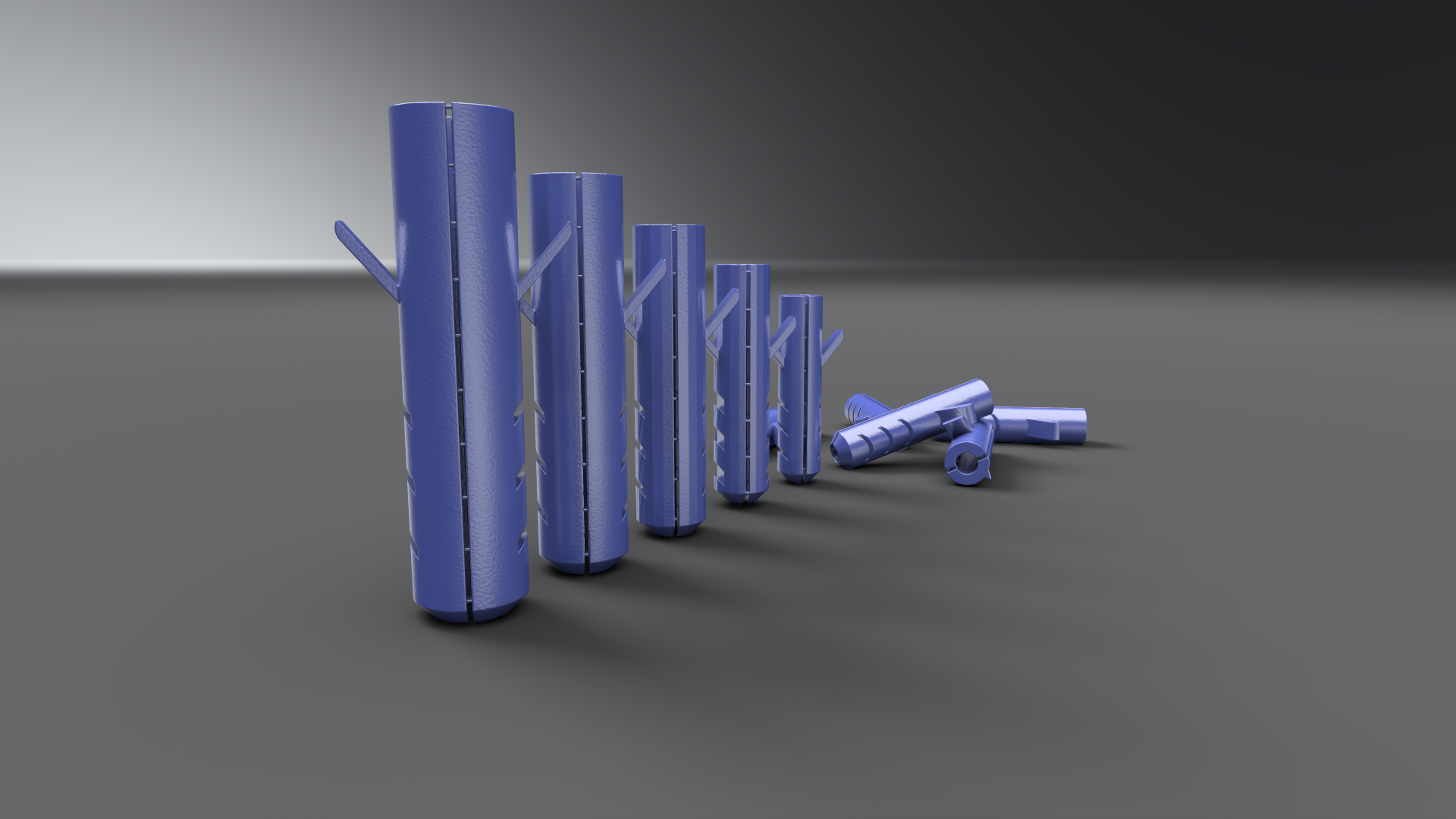 Bộ tắc kê vít in 3D này bao gồm bốn kích cỡ tắc kê: 6mm, 7mm, 8mm và 10mm, phù hợp với nhiều loại tường như bê tông, gạch hoặc thạch cao. Mỗi tắc kê được thiết kế để phù hợp với vít có đường kính ngoài nhỏ hơn khoảng 2–3mm so với đường kính ngoài của tắc kê — đảm bảo bung nở chắc chắn và giữ chặt.