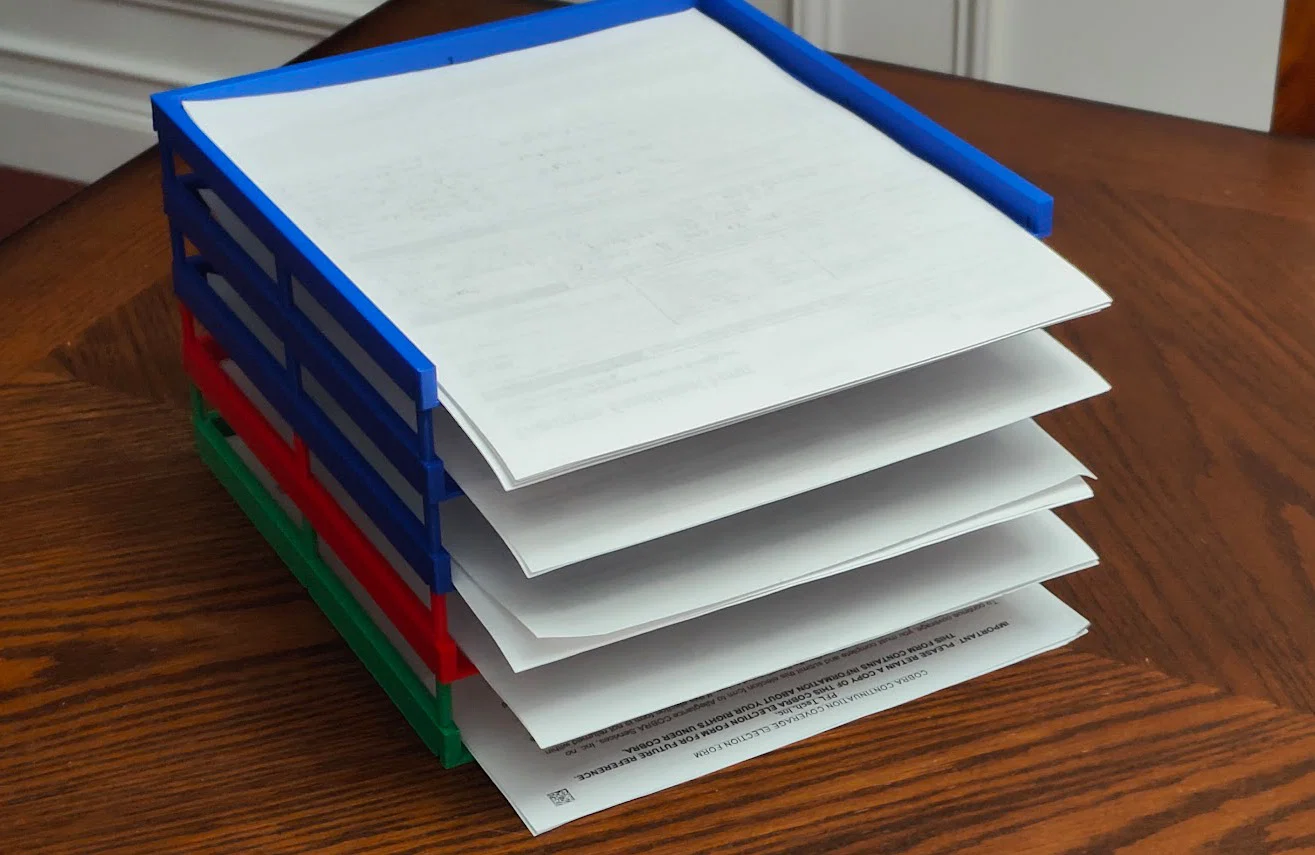 Khay giấy xếp chồng đa năng, giúp bạn sắp xếp giấy tờ gọn gàng. Có thể in nhiều module để sử dụng hoặc đặt dọc, đặt ngang tùy ý. Không cần support khi in, các bộ phận khớp nhau dễ dàng.