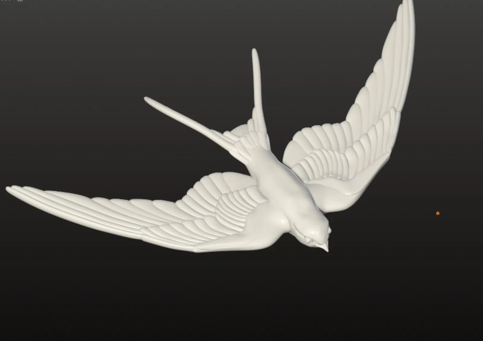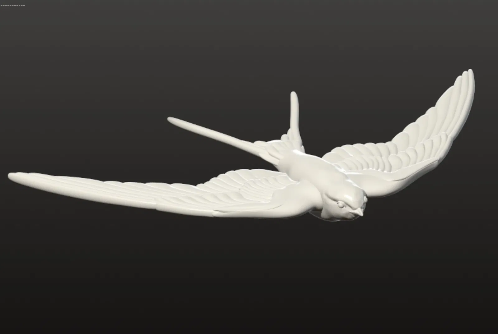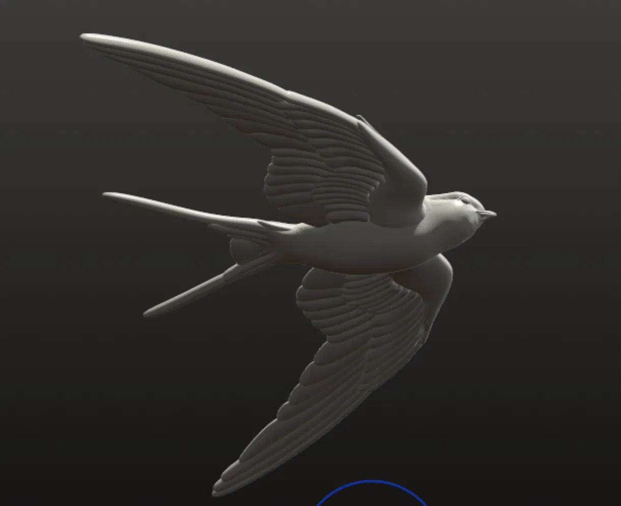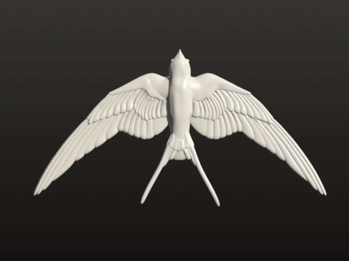 Mô hình 3D chi tiết của chim én đang dang rộng đôi cánh bay lượn trên bầu trời. Tui tự tay làm mô hình này vì không tìm được mẫu miễn phí nào trên mạng cả.