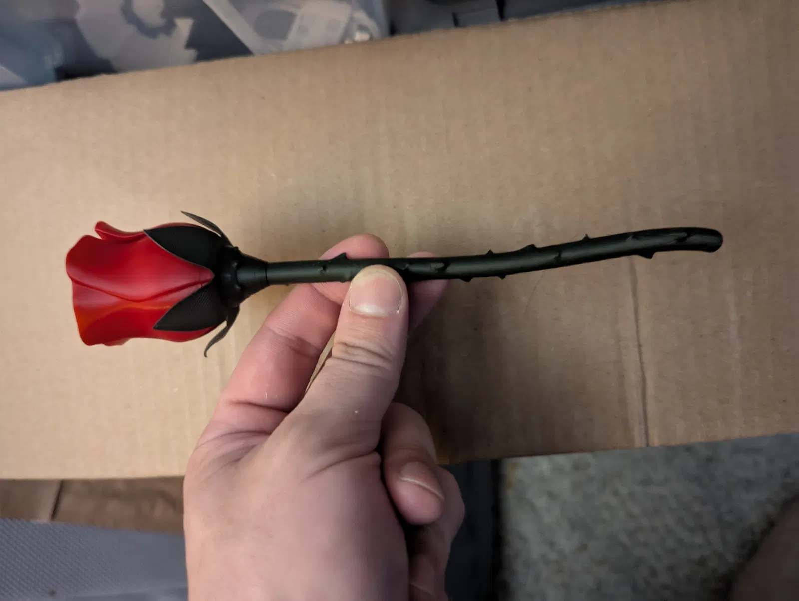 Mô hình hoa hồng và cuống. Hoa hồng được in theo kiểu "vase mode" cho ra thành phẩm mỏng manh, độc đáo. Thích hợp để trang trí hoặc làm quà tặng.