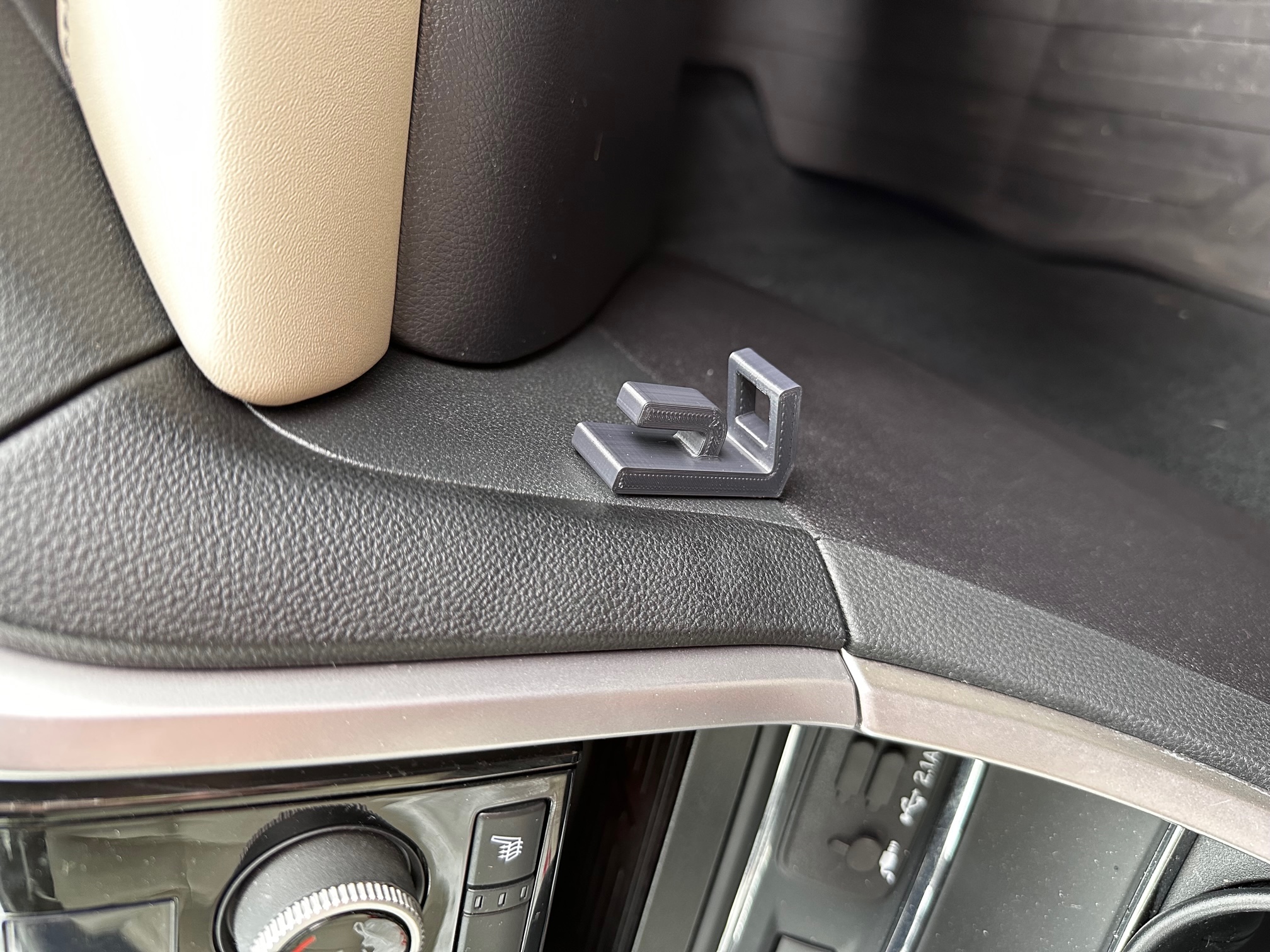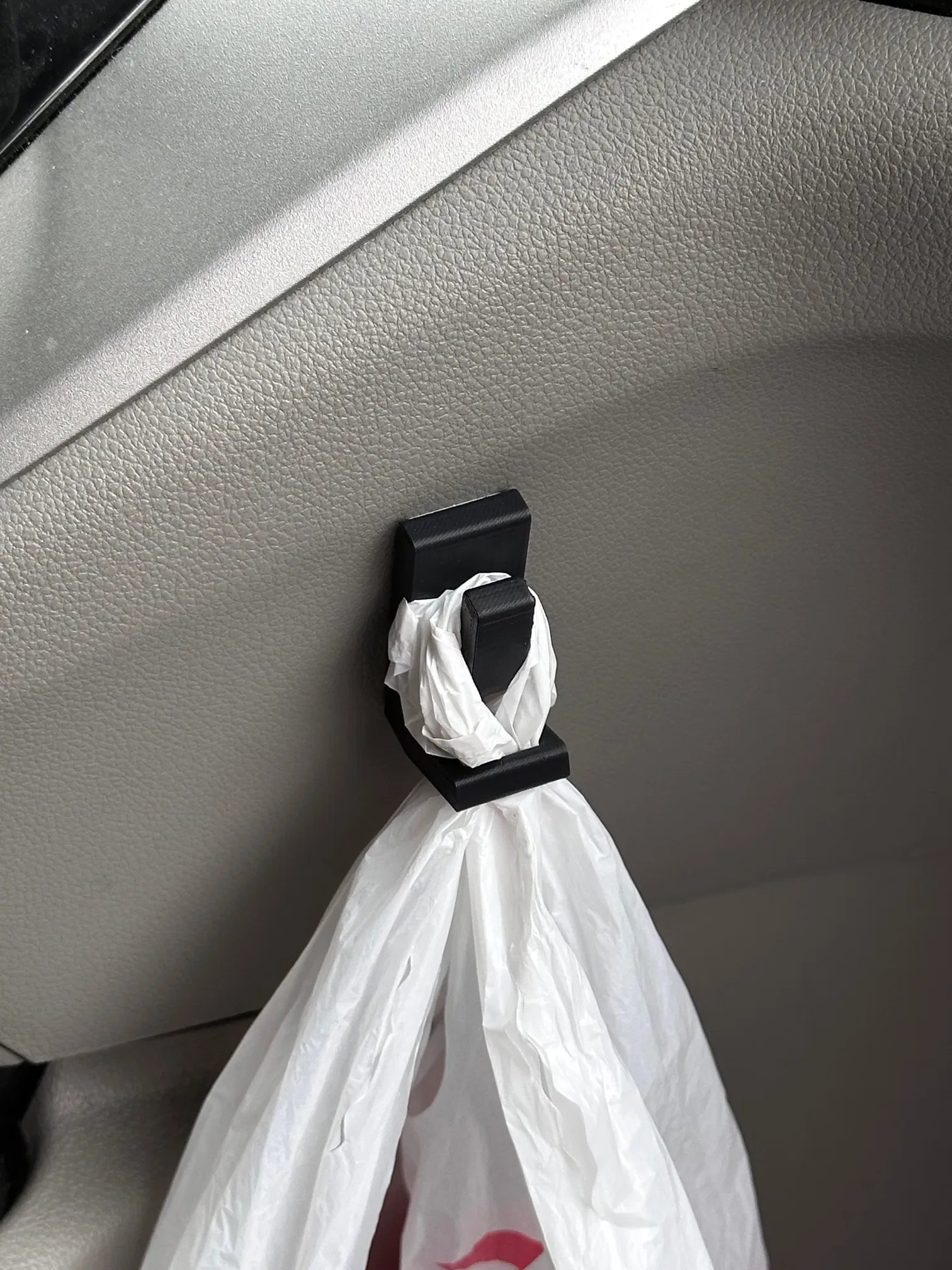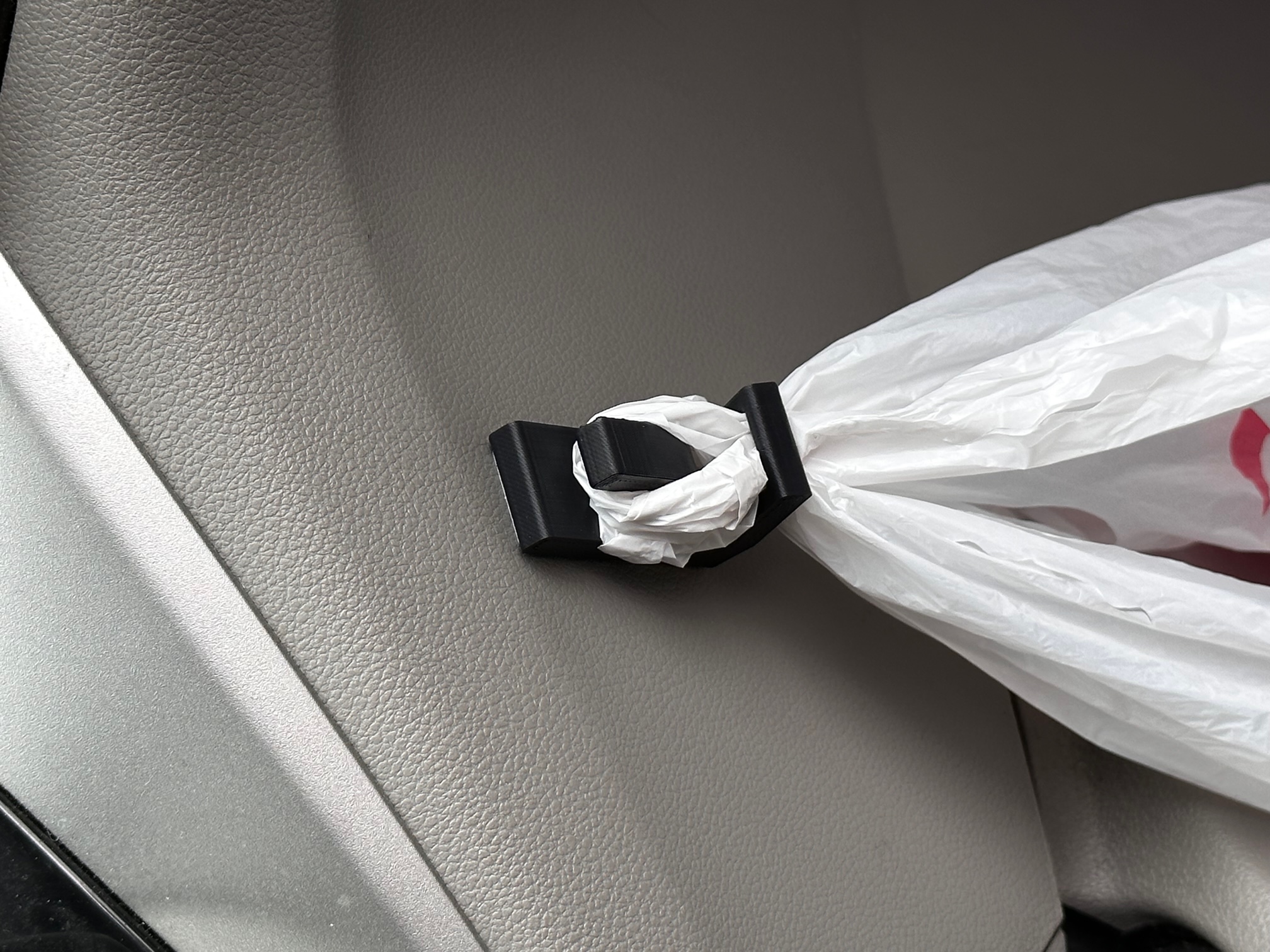 Tìm cái gì đó gọn gàng, nhỏ nhỏ để đựng túi rác trong xe. Cái kệ này xài được với túi ni lông siêu thị, luồn túi qua lỗ rồi quấn quanh móc. Nên in bằng ASA/ABS để chịu nhiệt, nhớ có support cho cái móc nha.
