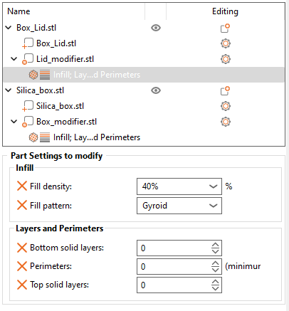Tải "Silica_Box" và "Silica_Box_Lid" vào Prusaslicer