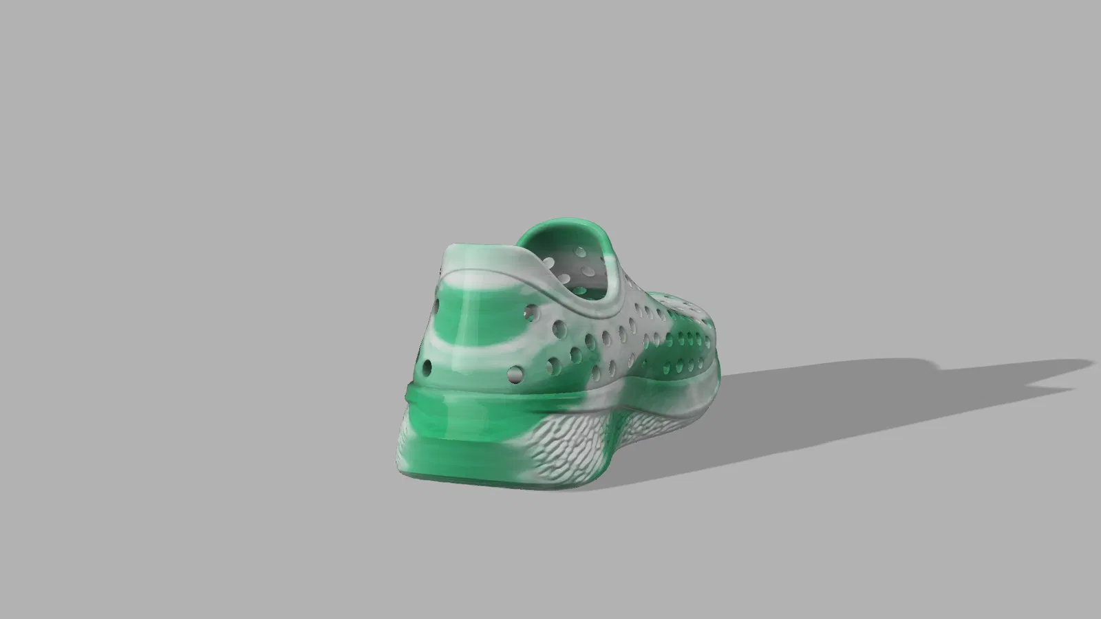 Đôi giày "foam" phong cách tương lai này kết hợp giữa thoáng khí, thoải mái và thẩm mỹ táo bạo – hoàn hảo cho việc thư giãn mùa hè hoặc như một ý tưởng concept trực quan. Thiết kế có các lỗ thông hơi xung quanh, gót chân được tạo hình và đế được điêu khắc mềm mại lấy cảm hứng từ "foam runners" và Crocs.