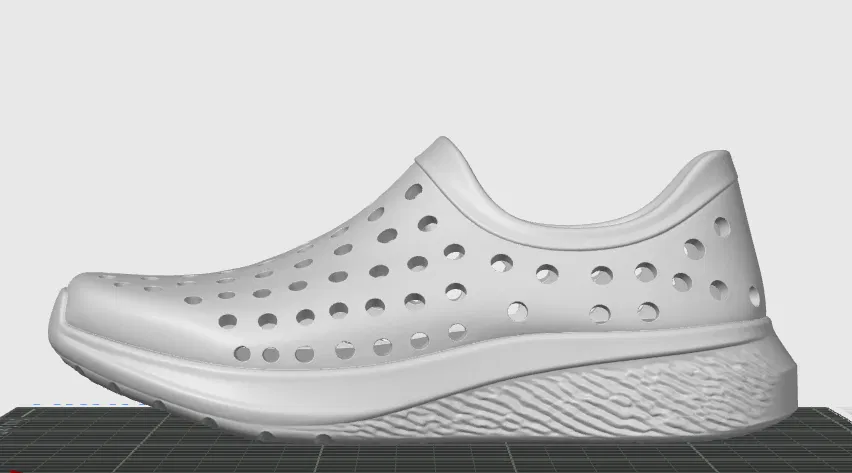 Mô hình giày "foam" thông thoáng, linh hoạt cho mùa hè. Thiết kế xỏ vào, lấy cảm hứng từ "foam runners" và Crocs. Nguyên mẫu chưa thử nghiệm, có thể cần điều chỉnh kích thước và hỗ trợ khi in. Phù hợp cho trang trí hoặc mang thử nghiệm.