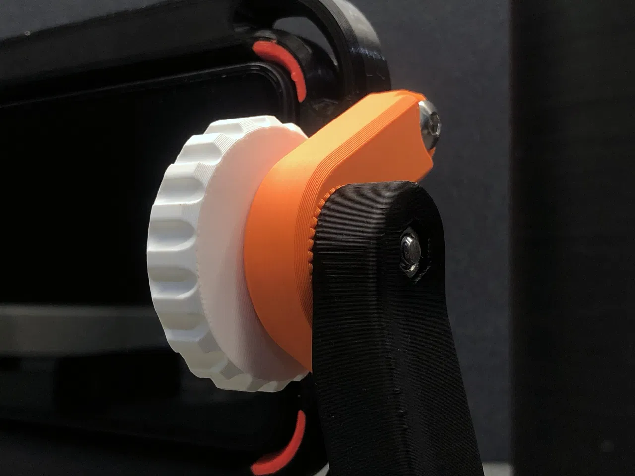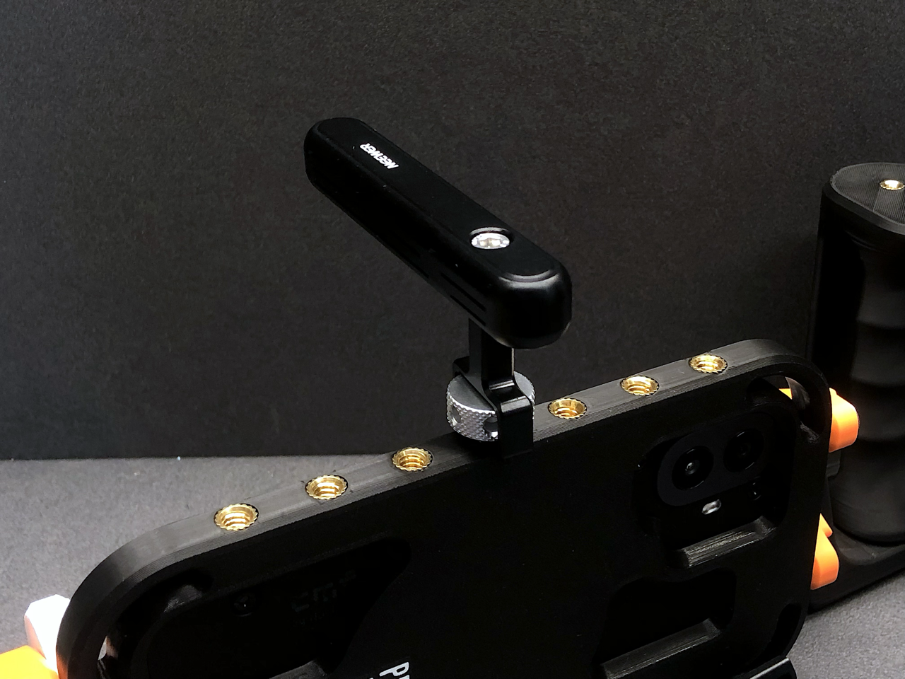 Tay cầm này gắn trực tiếp vào giá đỡ bằng hai vít M5x14. Nó được thiết kế để chỉ gắn vào cạnh phải của giá đỡ để tránh chặn camera của điện thoại.